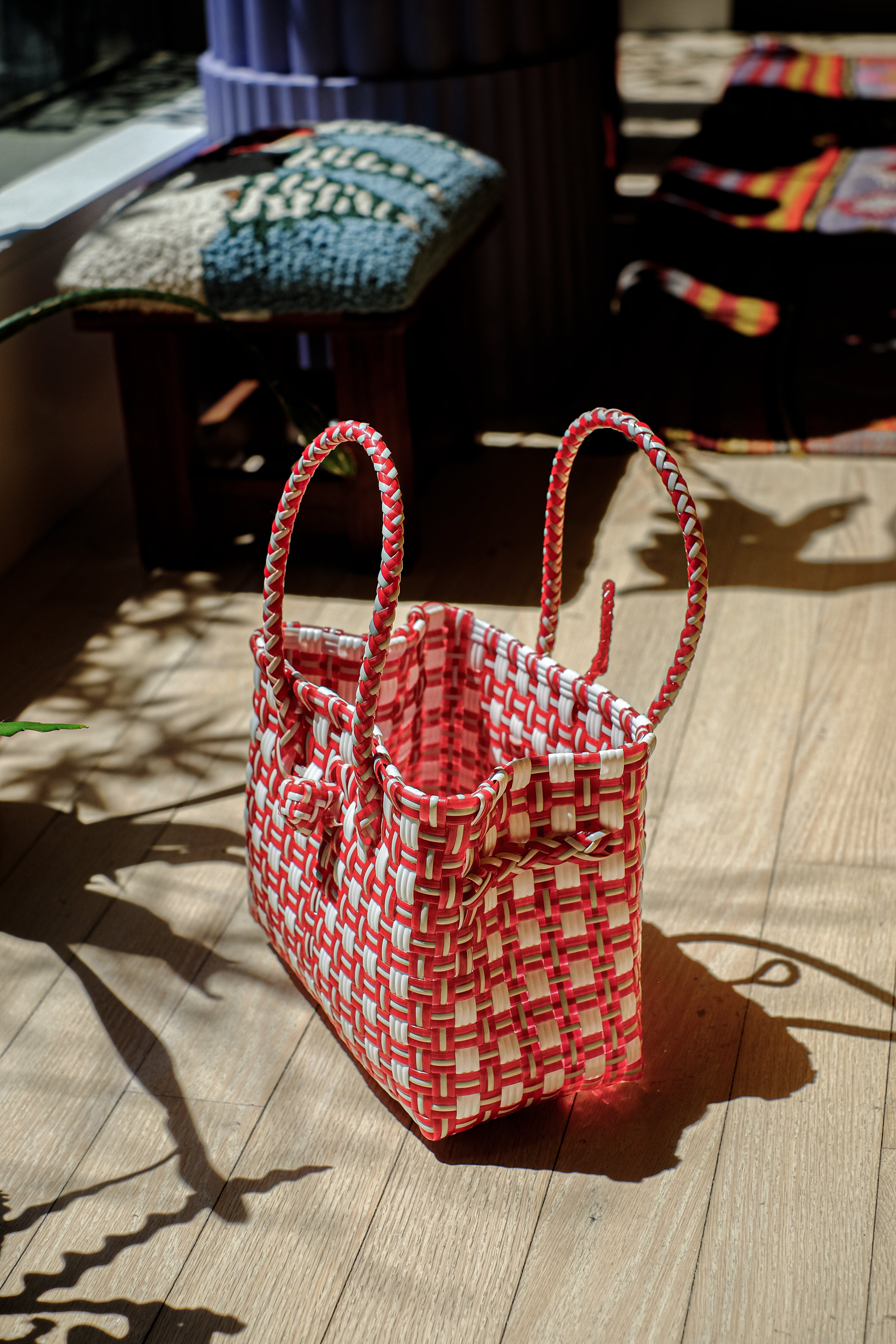 "Saigon Birkin" Recycled Plastic Bag in Pink and White