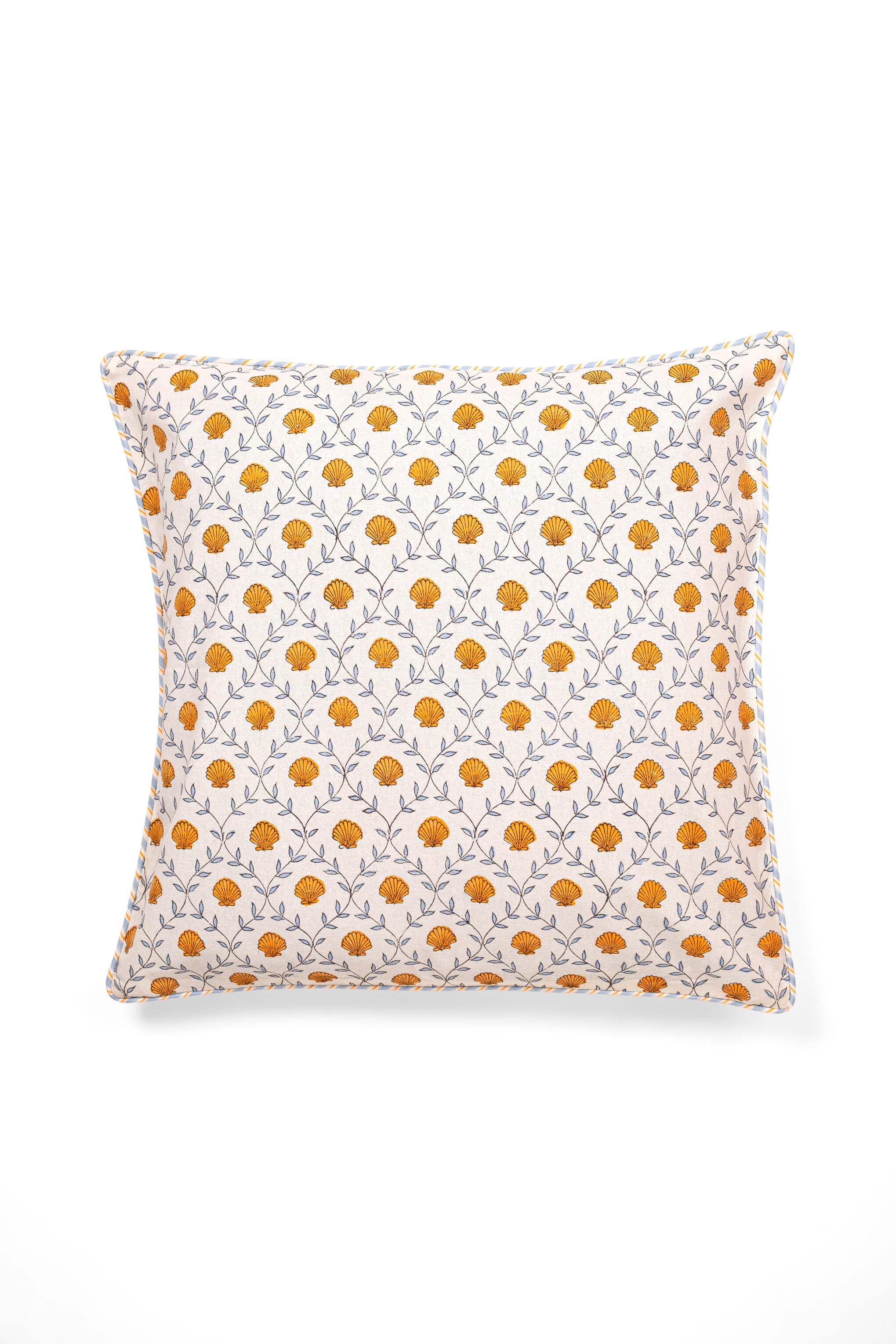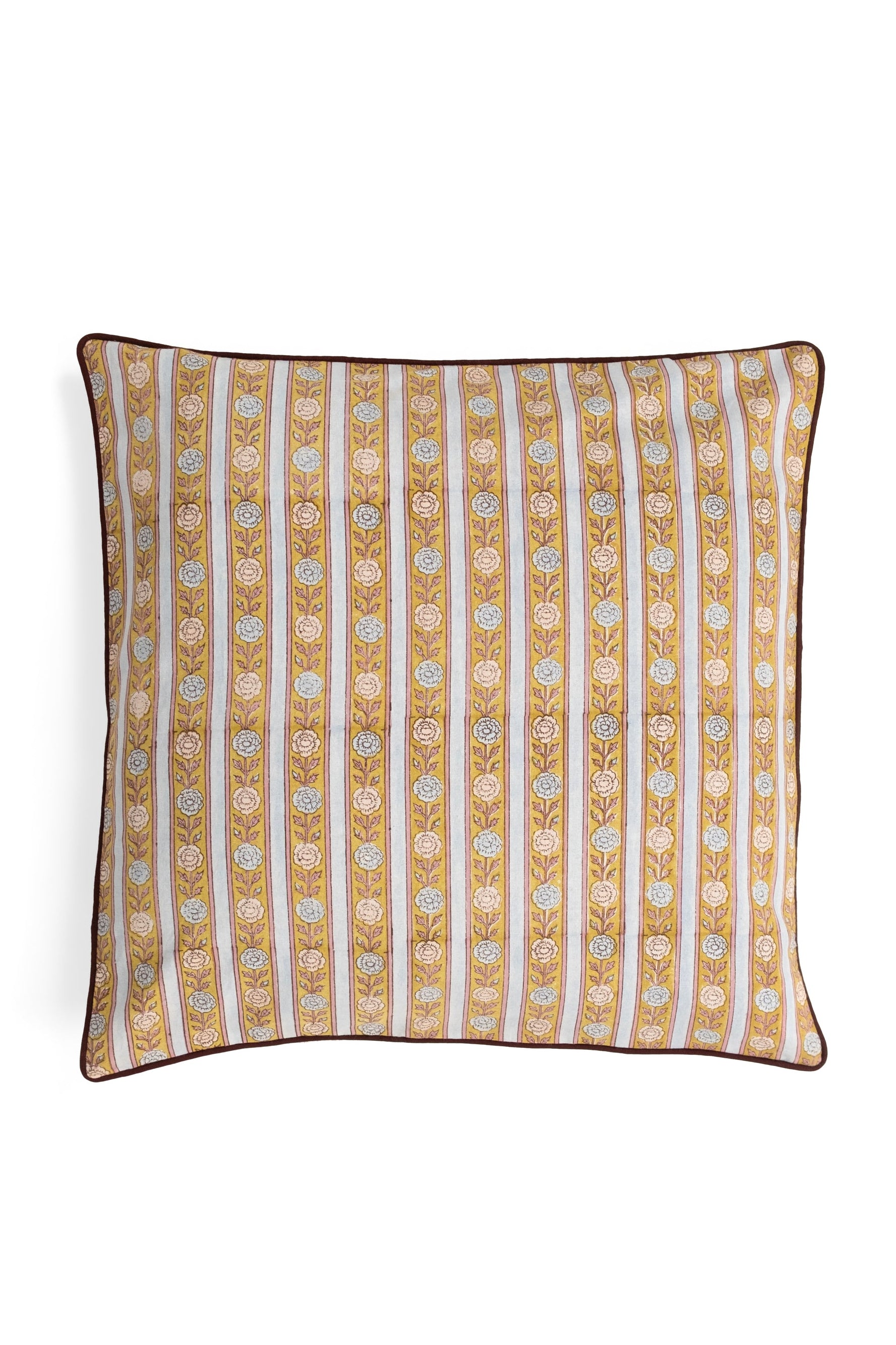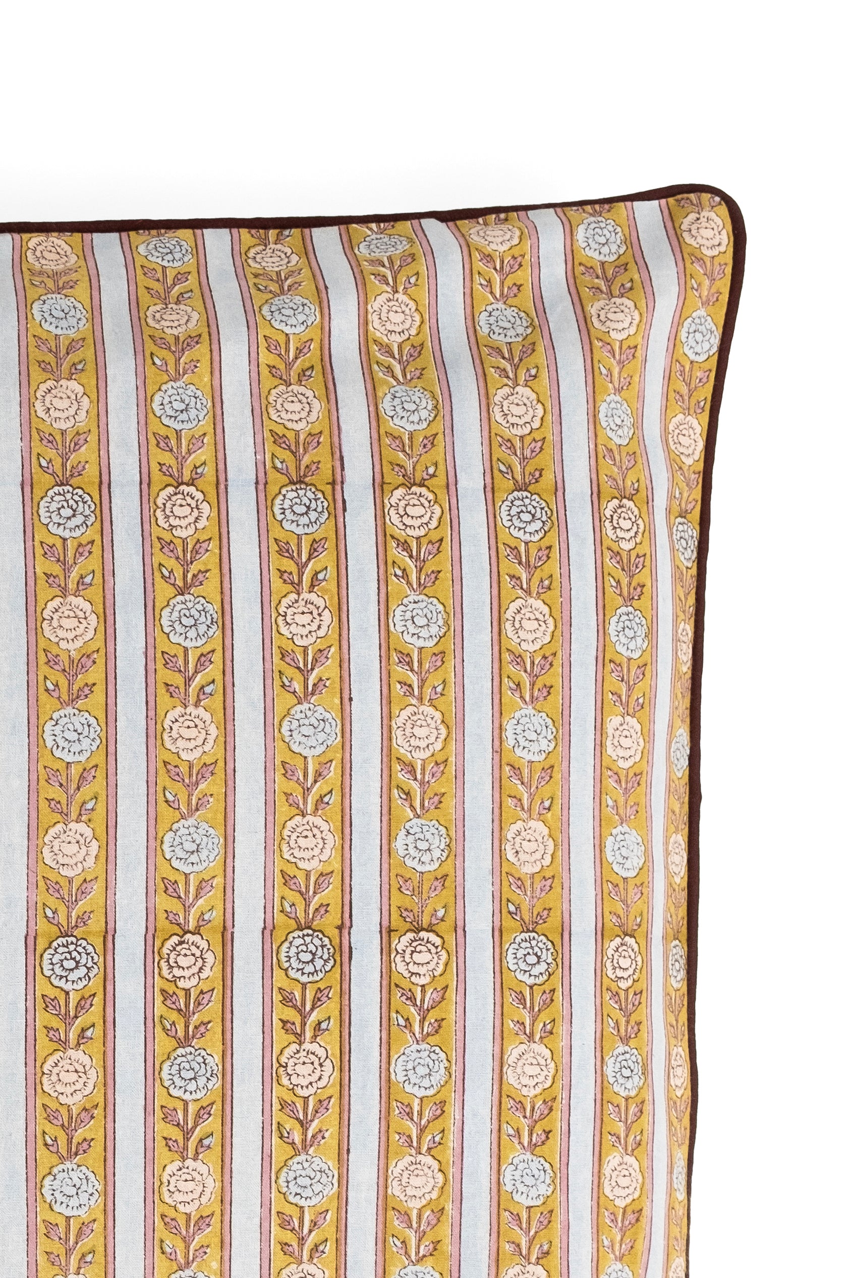 Birds of a Feather Blockprint Reversible Pillow in Saffron Yellow