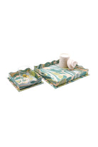 Nesting Scalloped Hand-Marbled Trays in Green and Pink
