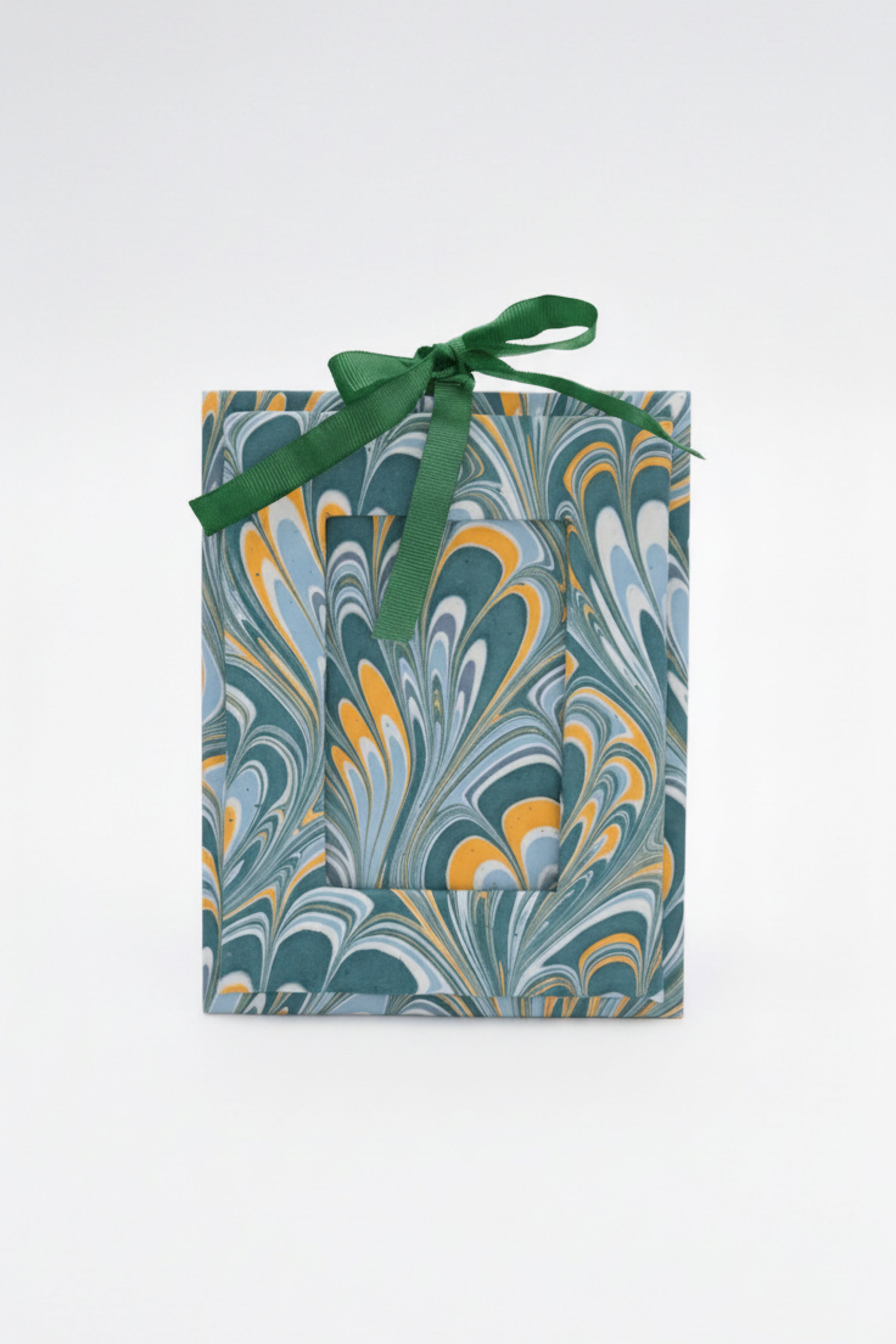Hand-Marbled Large Wall Picture Frame in Green & Blue, 5x7