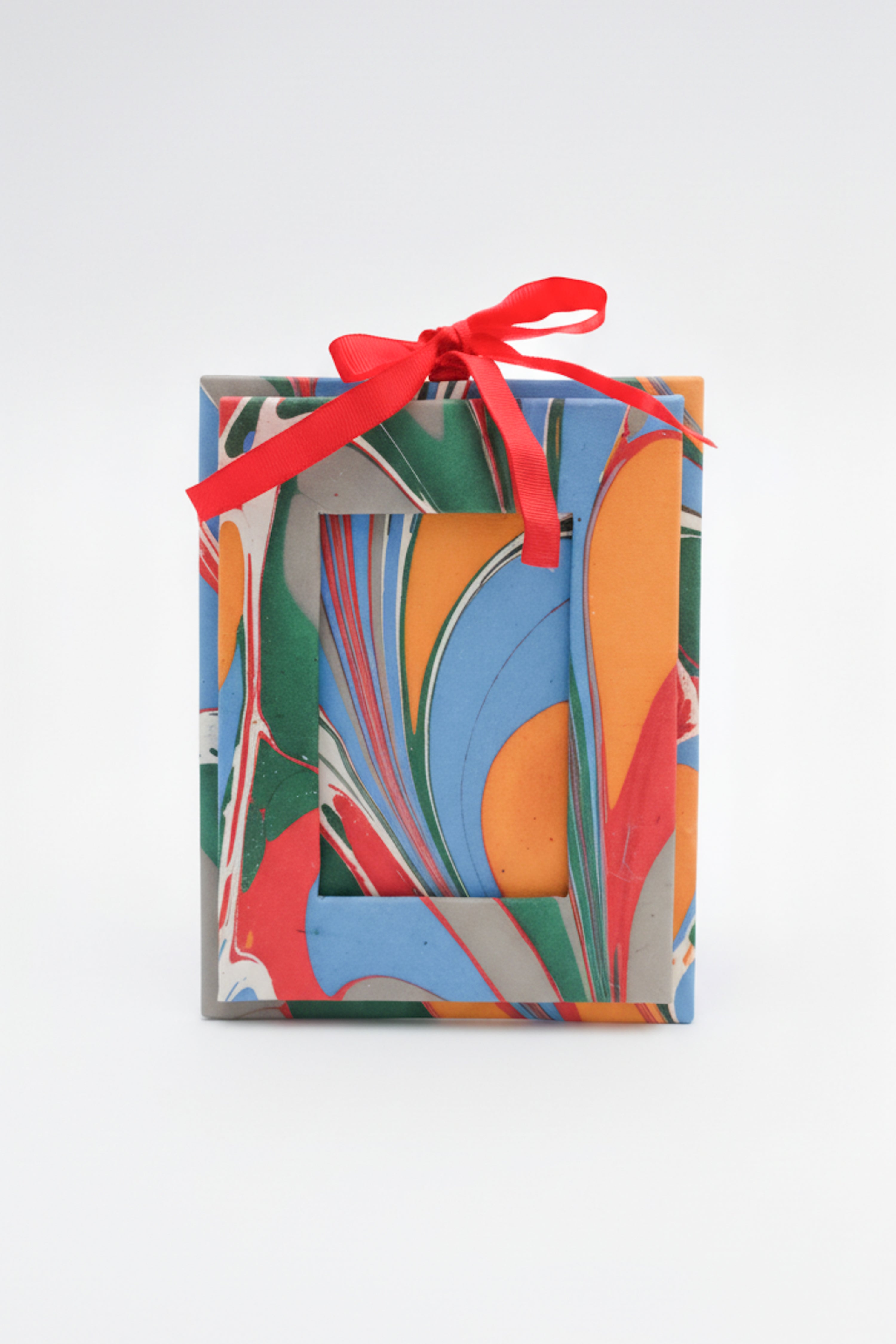 Hand Marbled Picture Frame Folding Book, 4x6 in Multicolor