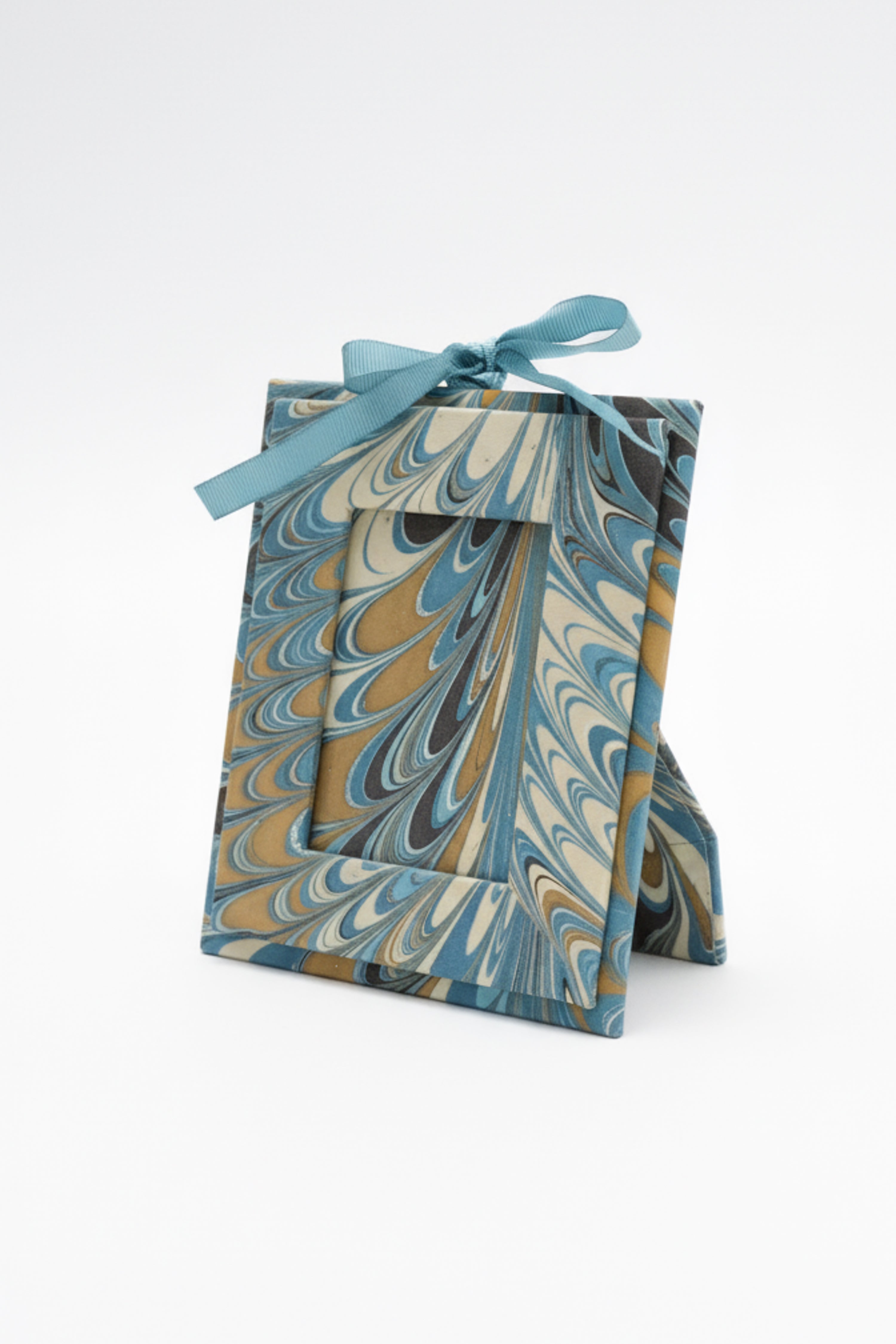 Hand-Marbled Picture Frame in Blue & Gold, 4x6