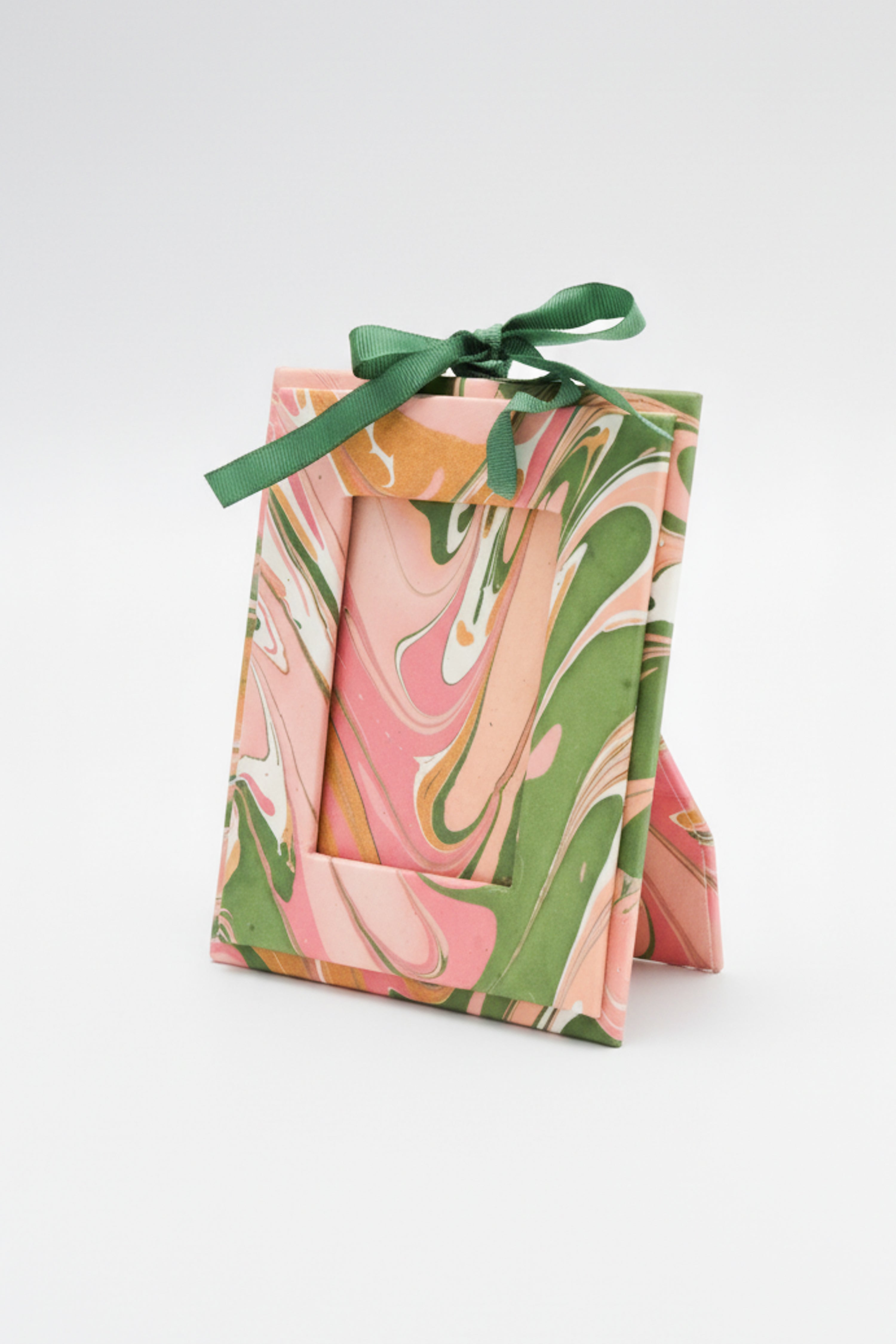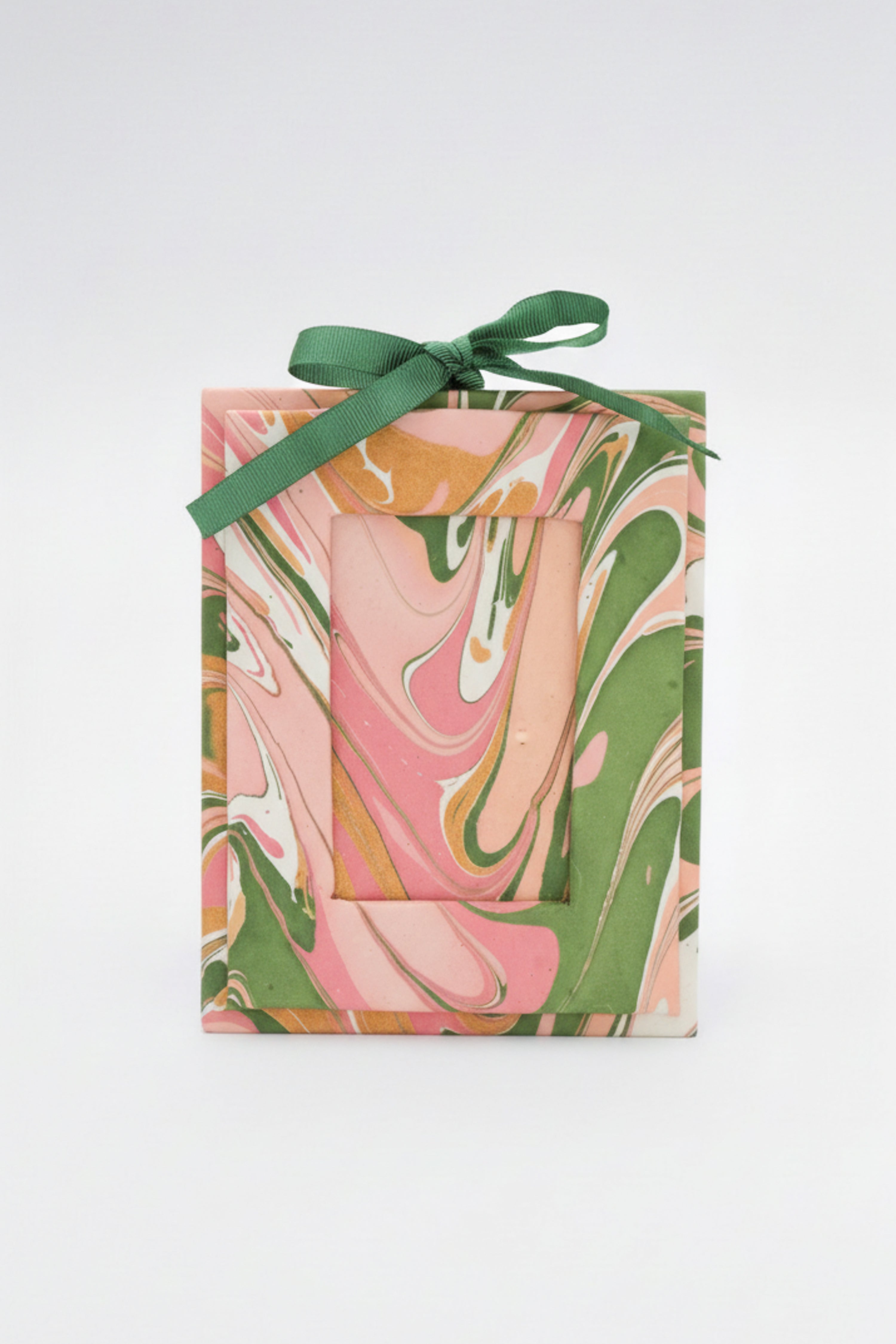 Hand Marbled Picture Frame Folding Book, 4x6 in Green and Pink