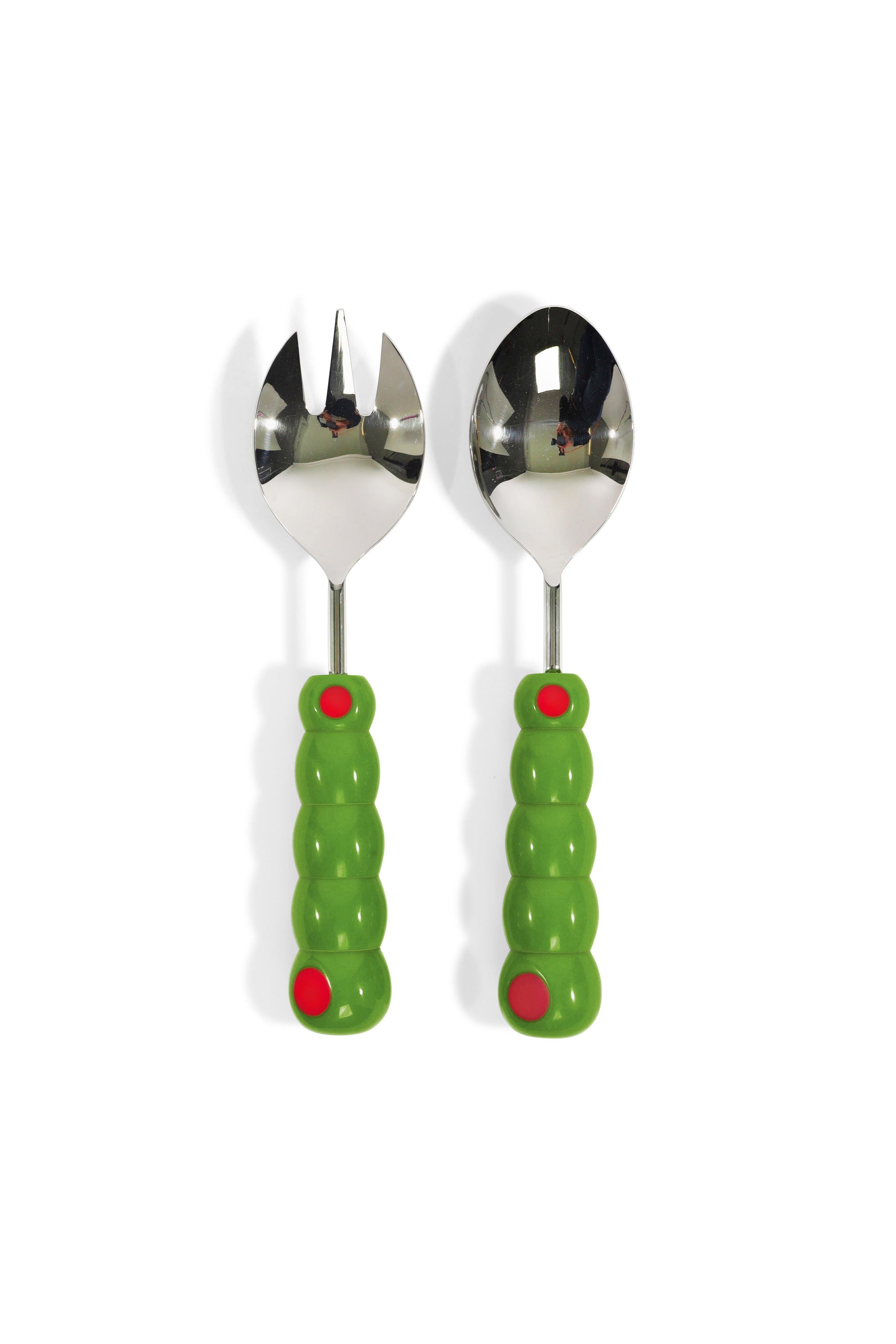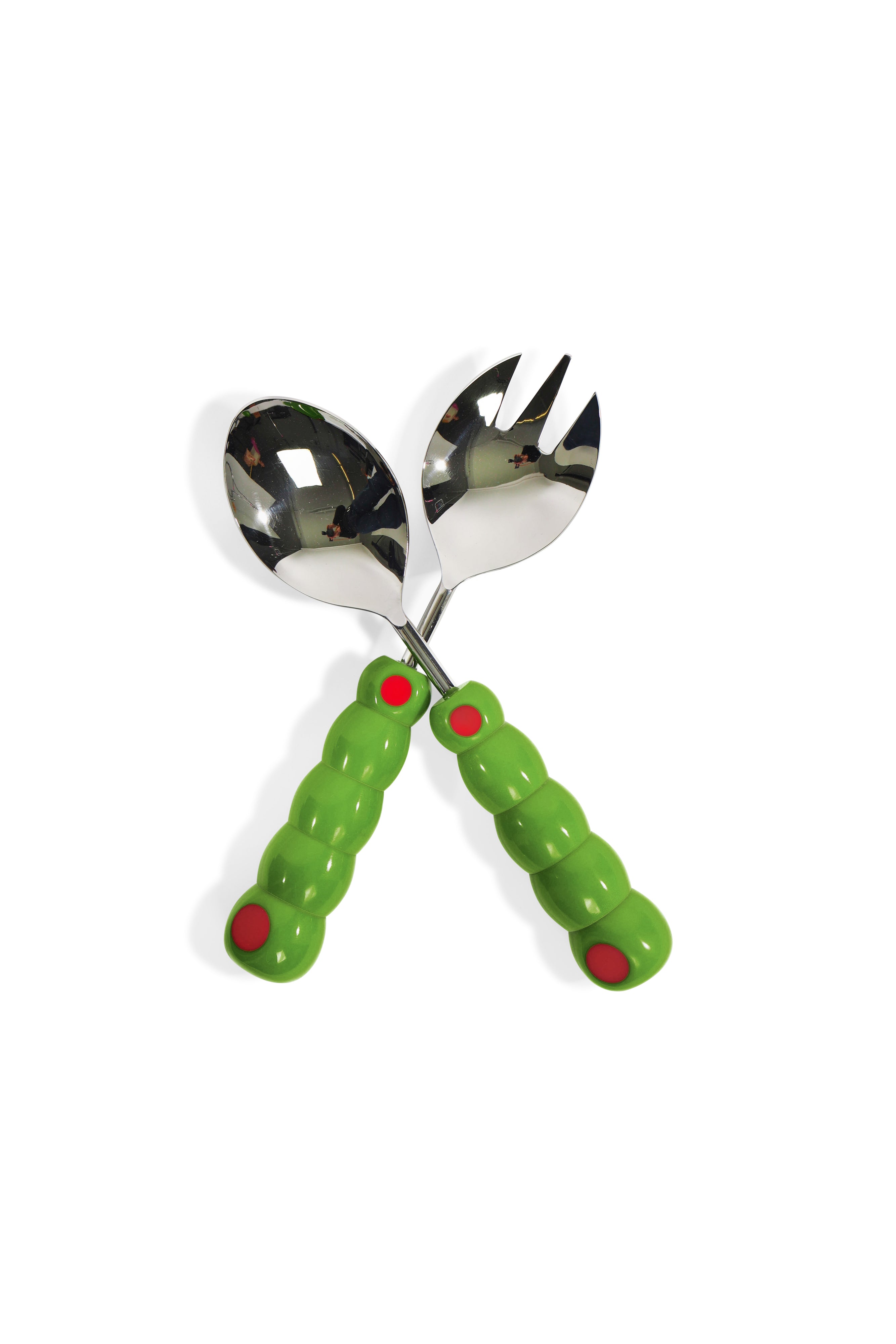 This sophisticated set includes elegantly crafted utensils featuring classic olive-style handles, offering a timeless touch to your table setting. Whether you're tossing a salad or a serving a hearty meal, this set is a conversation starter for all your guests.