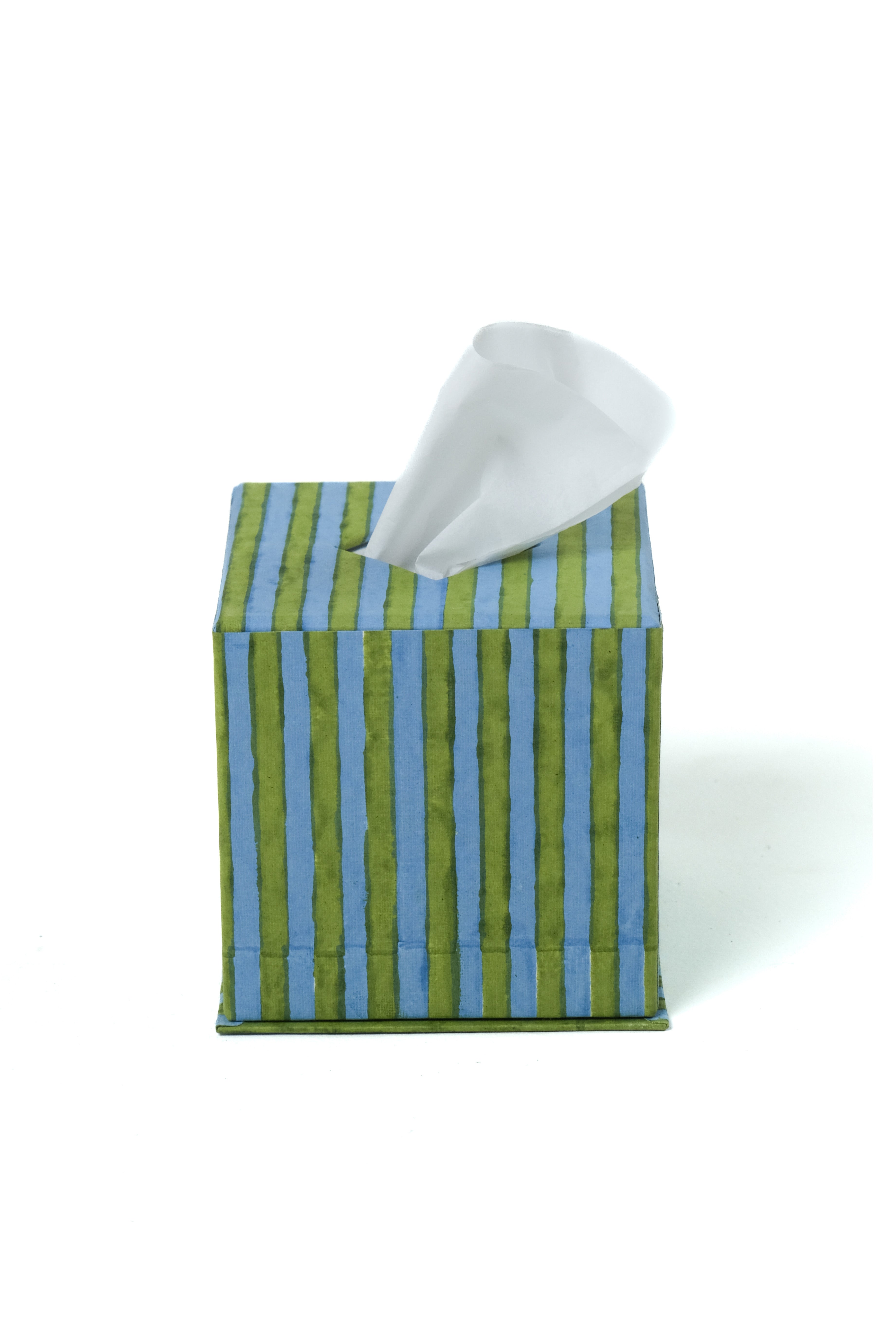 Tissue Box Cover in Green and Blue Stripes Blockprint
