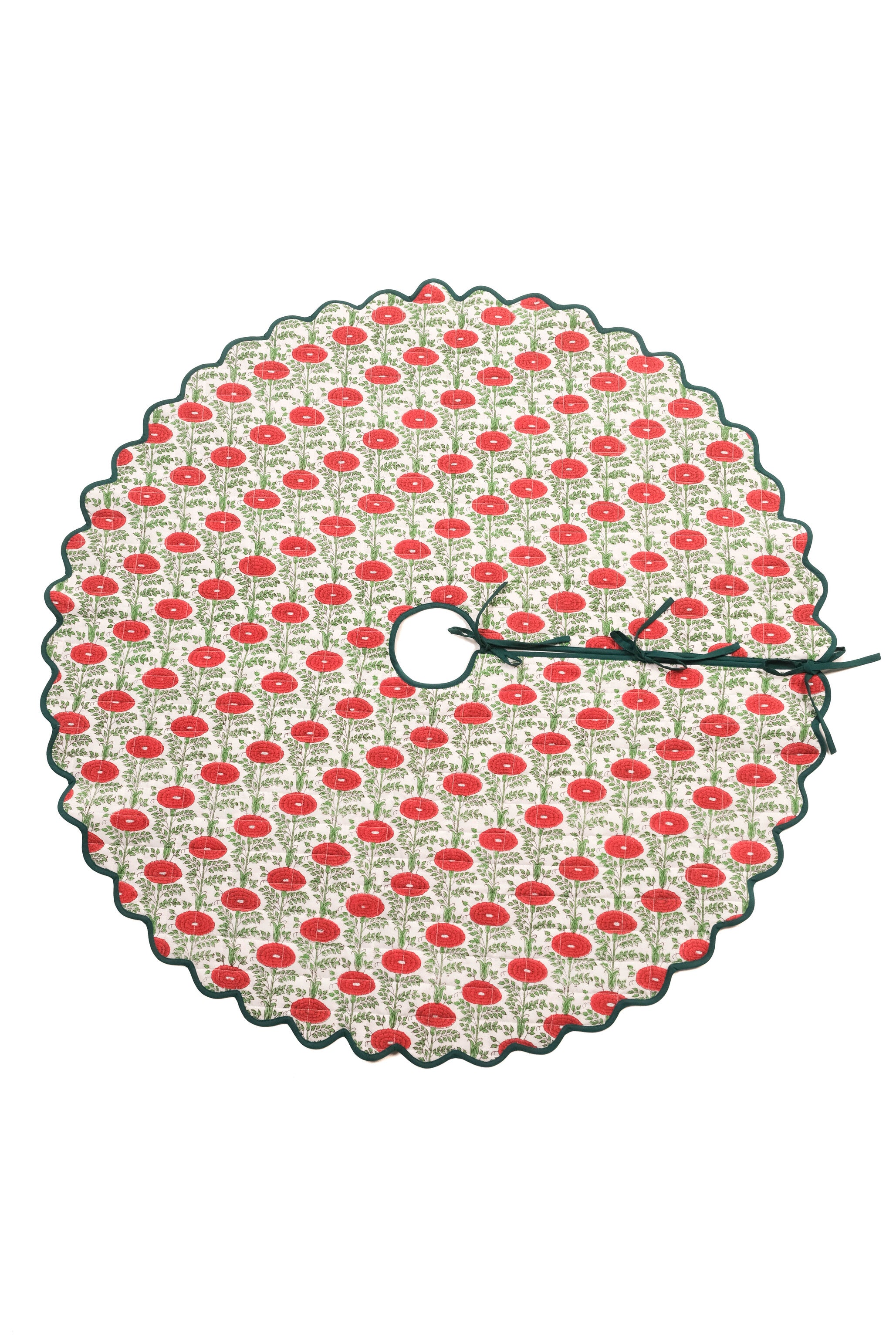 Scalloped Blockprint Quilted Tree Skirt in Araminta Green