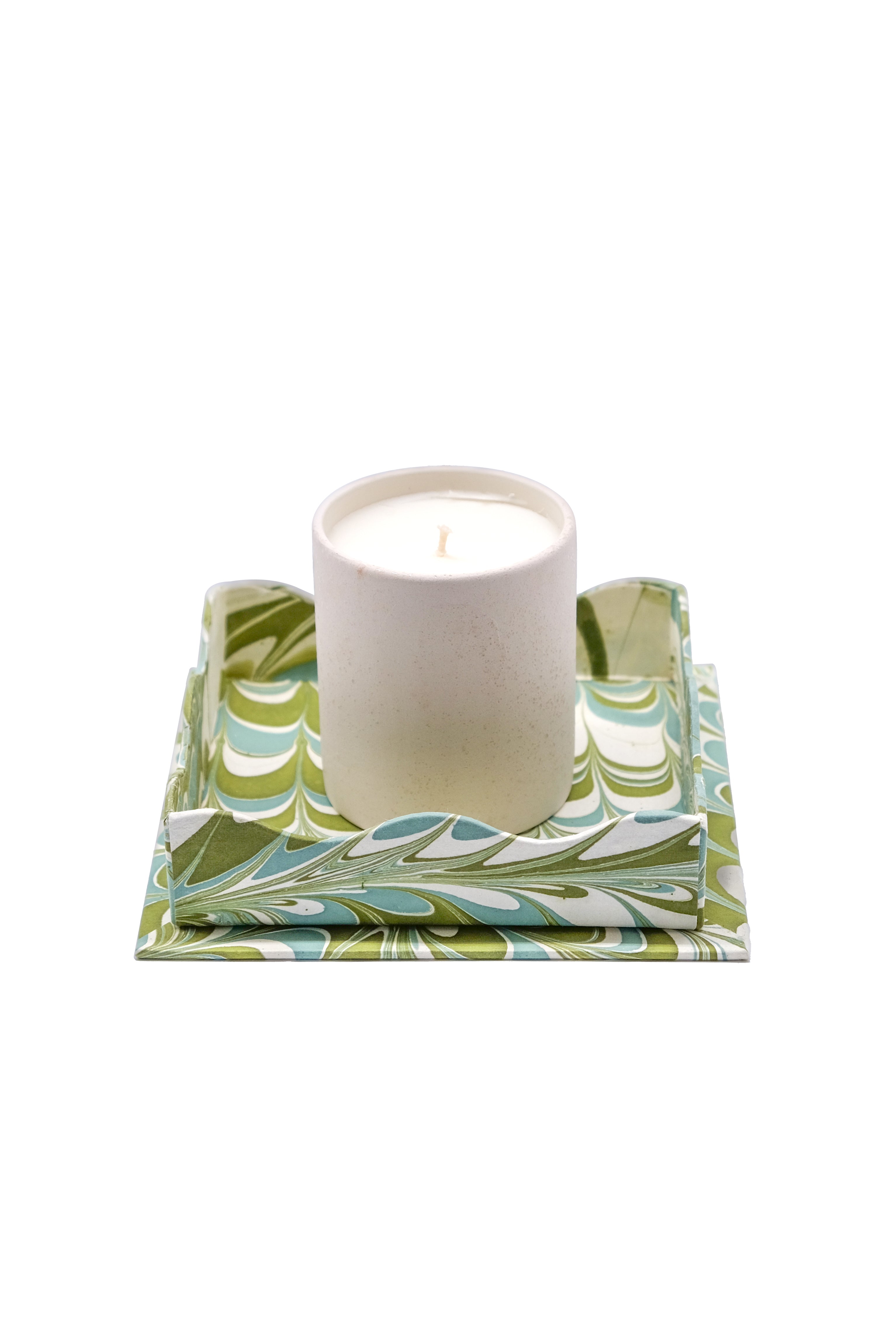 Nesting Scalloped Hand-Marbled Trays in Ocean Wave