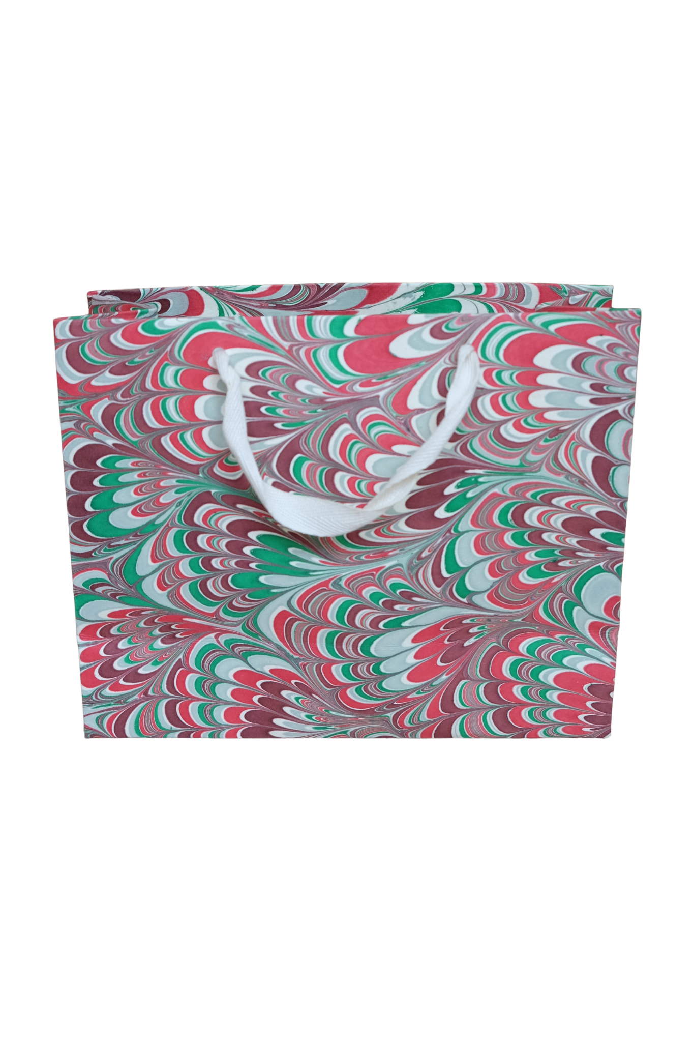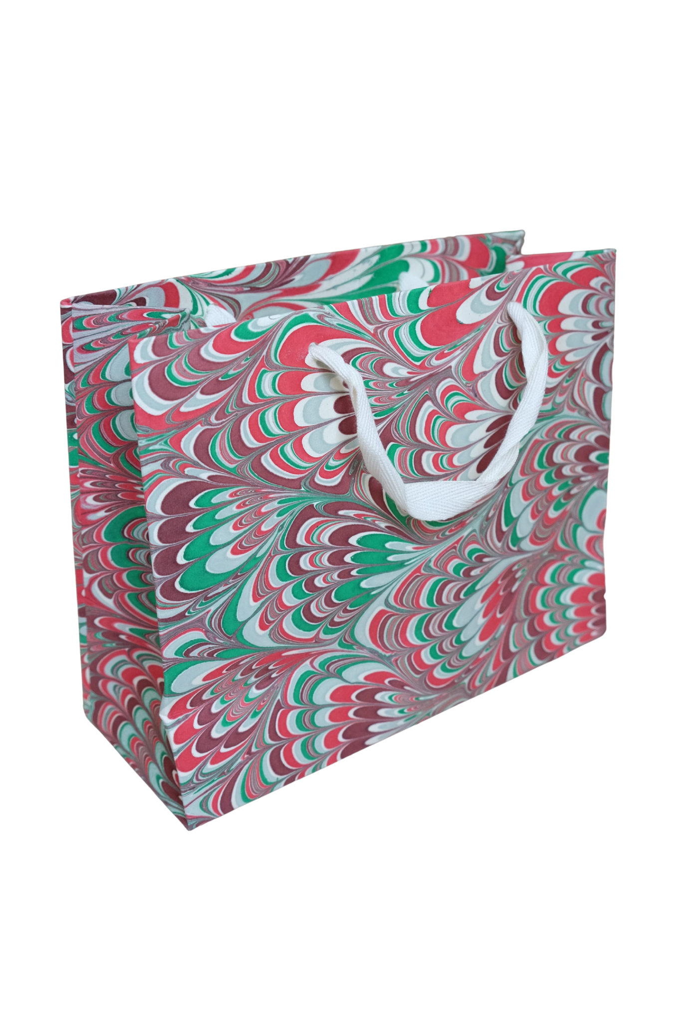 Holiday Festive Hand Marbled Gift Bag (Medium)
