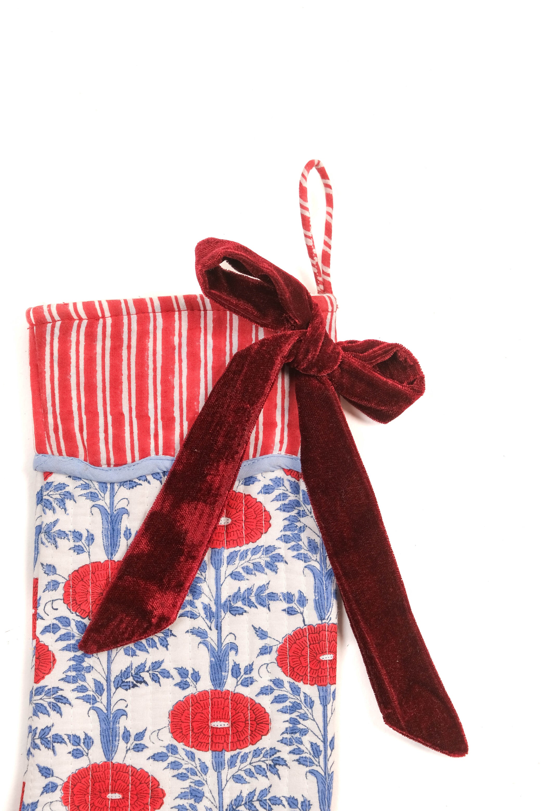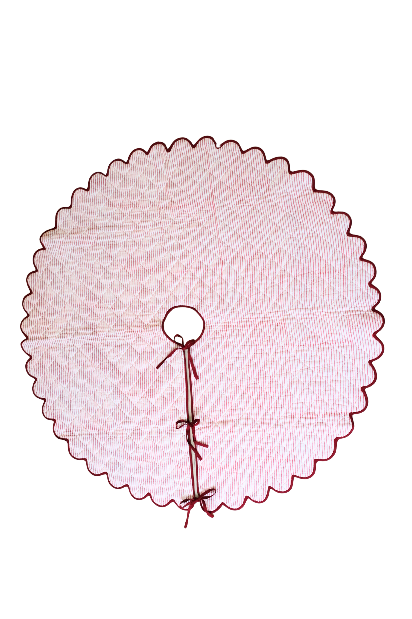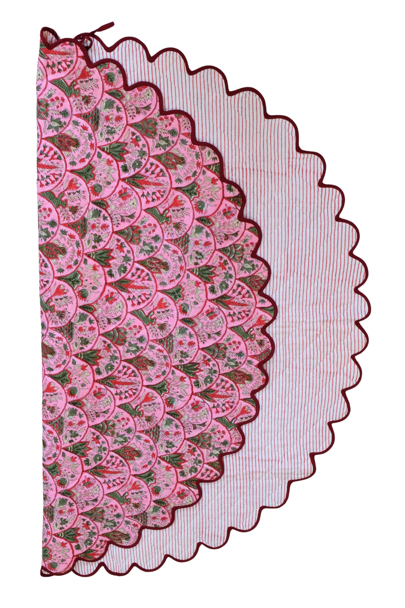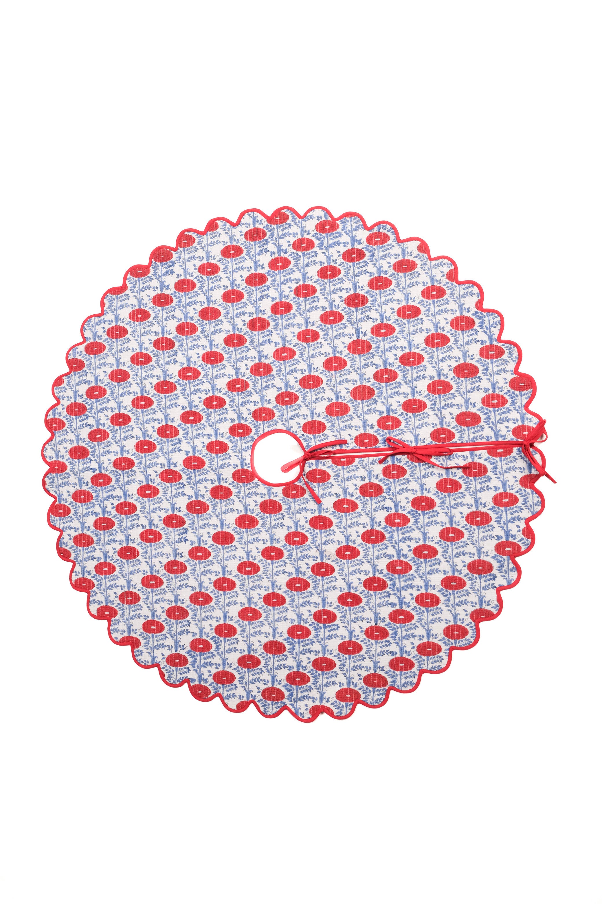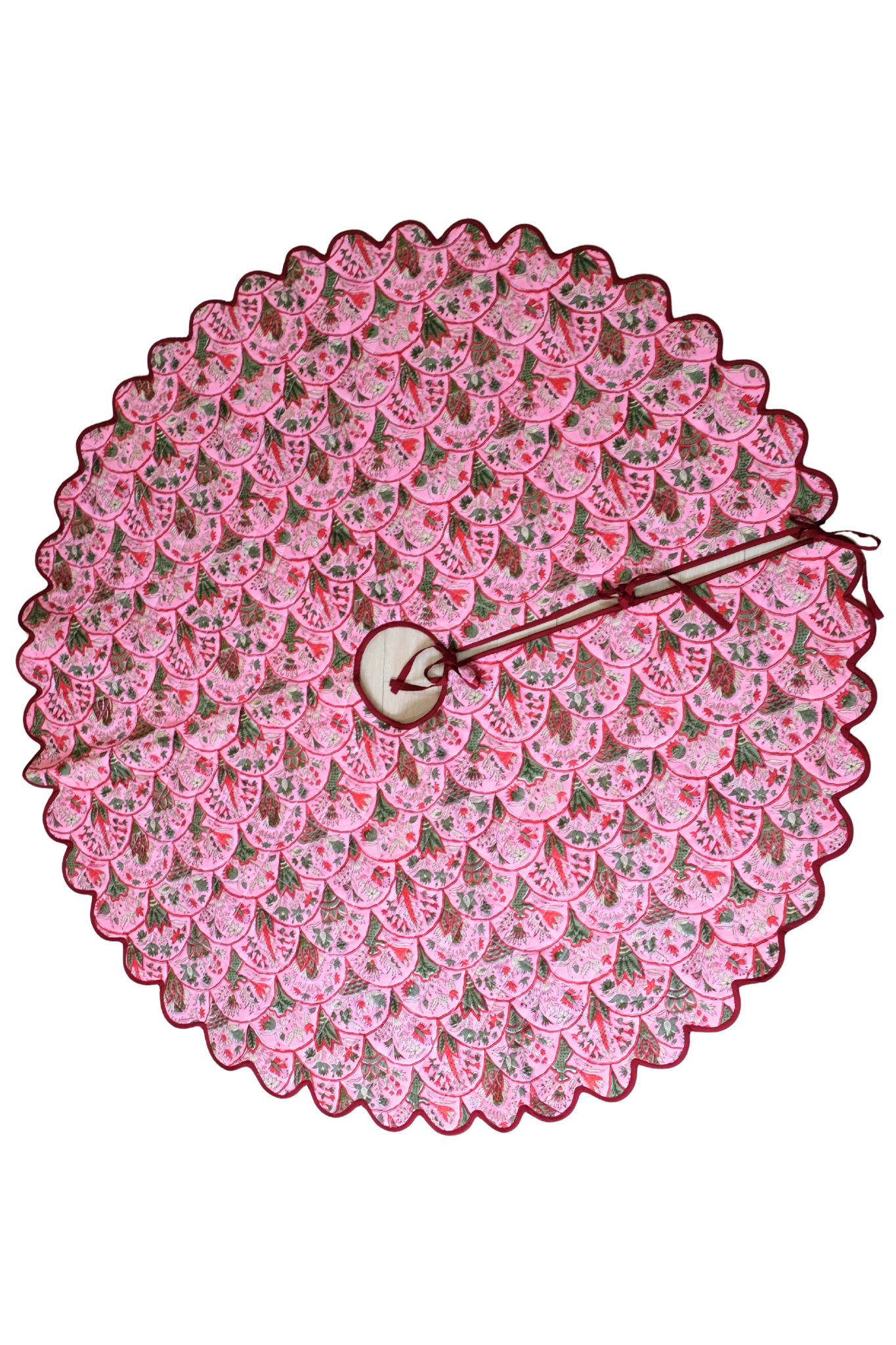 Scalloped Blockprint Quilted Tree Skirt in Araminta Red