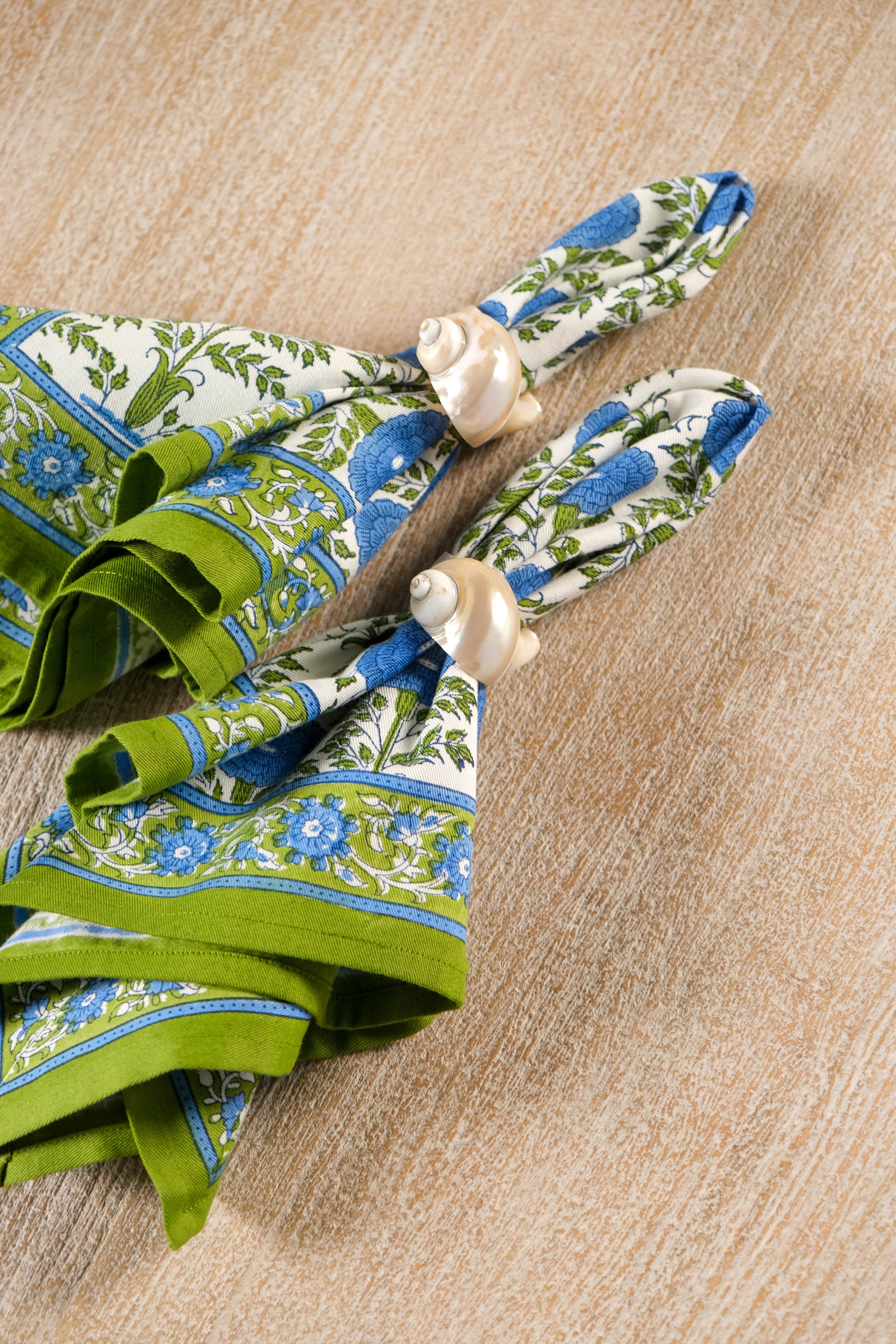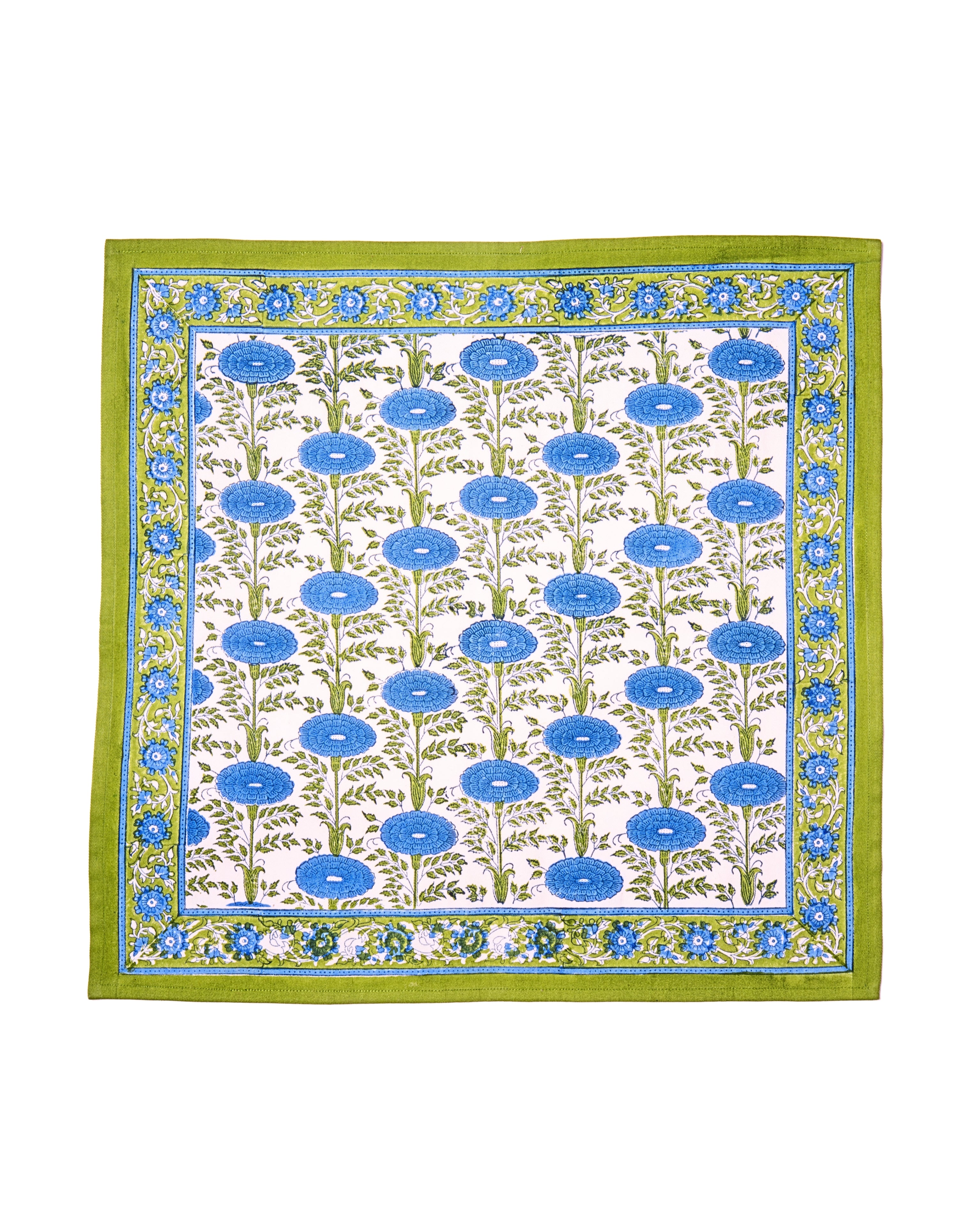 Mona Scallop Embroidered Blockprint Napkins in Blue, Set of 4