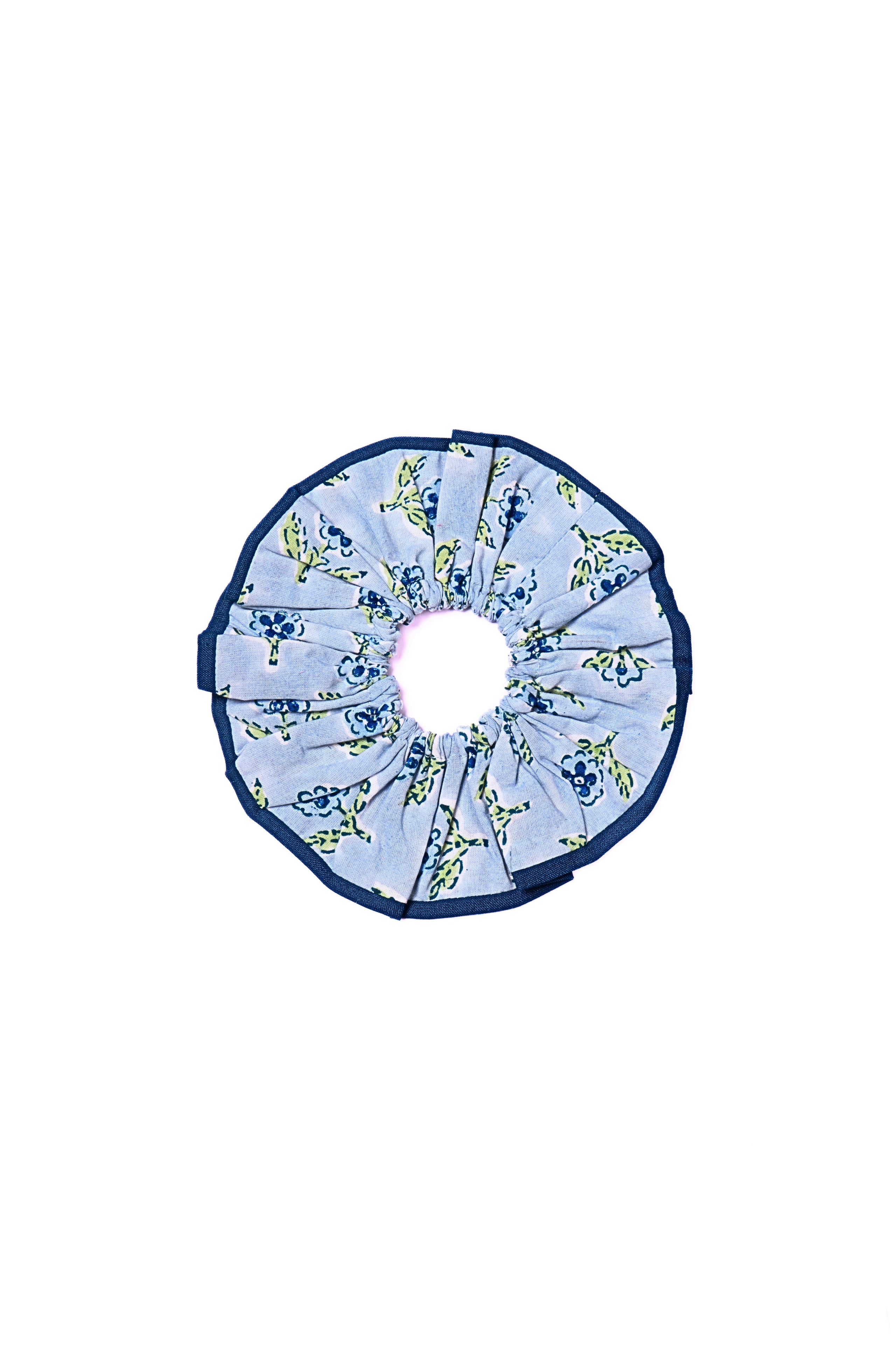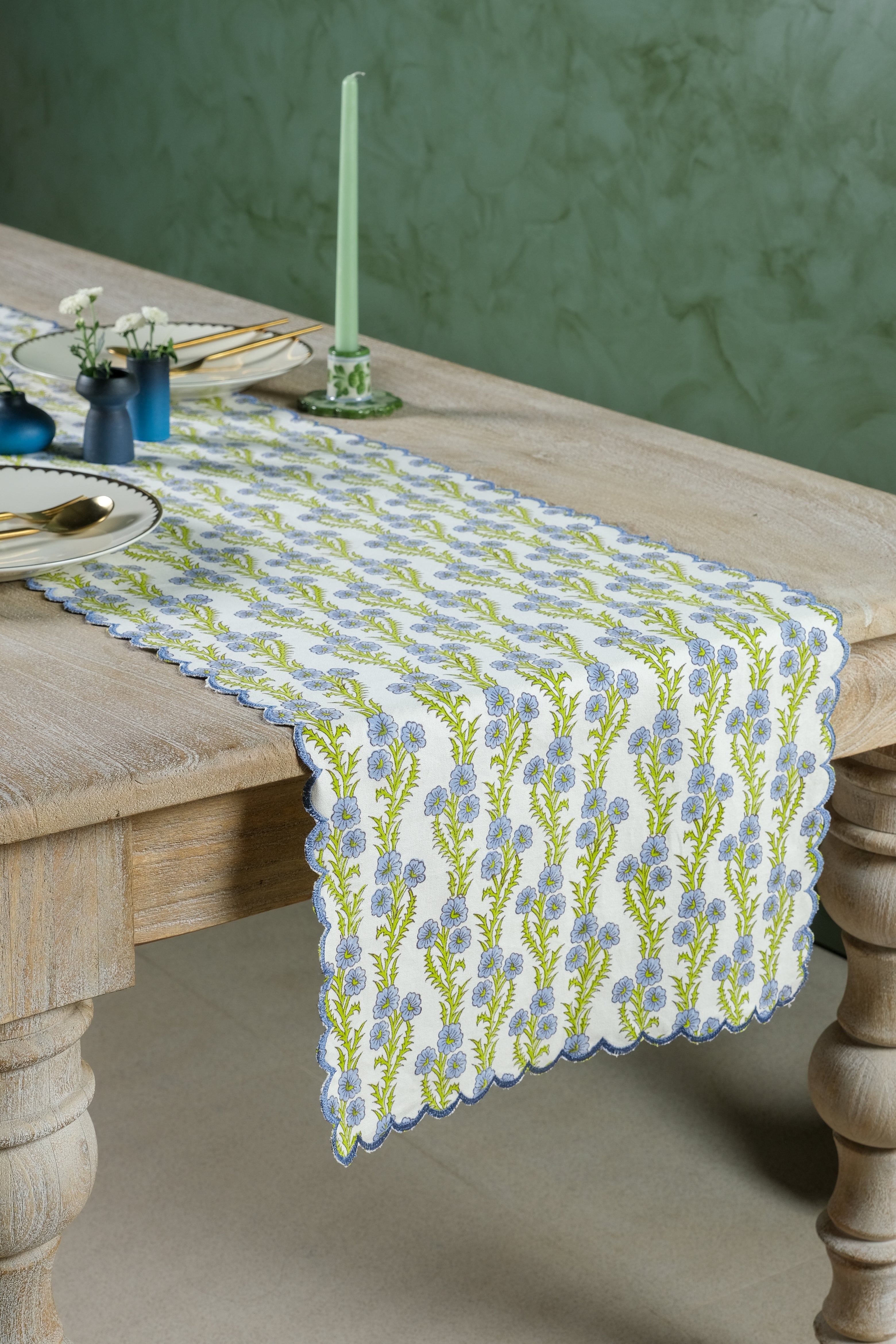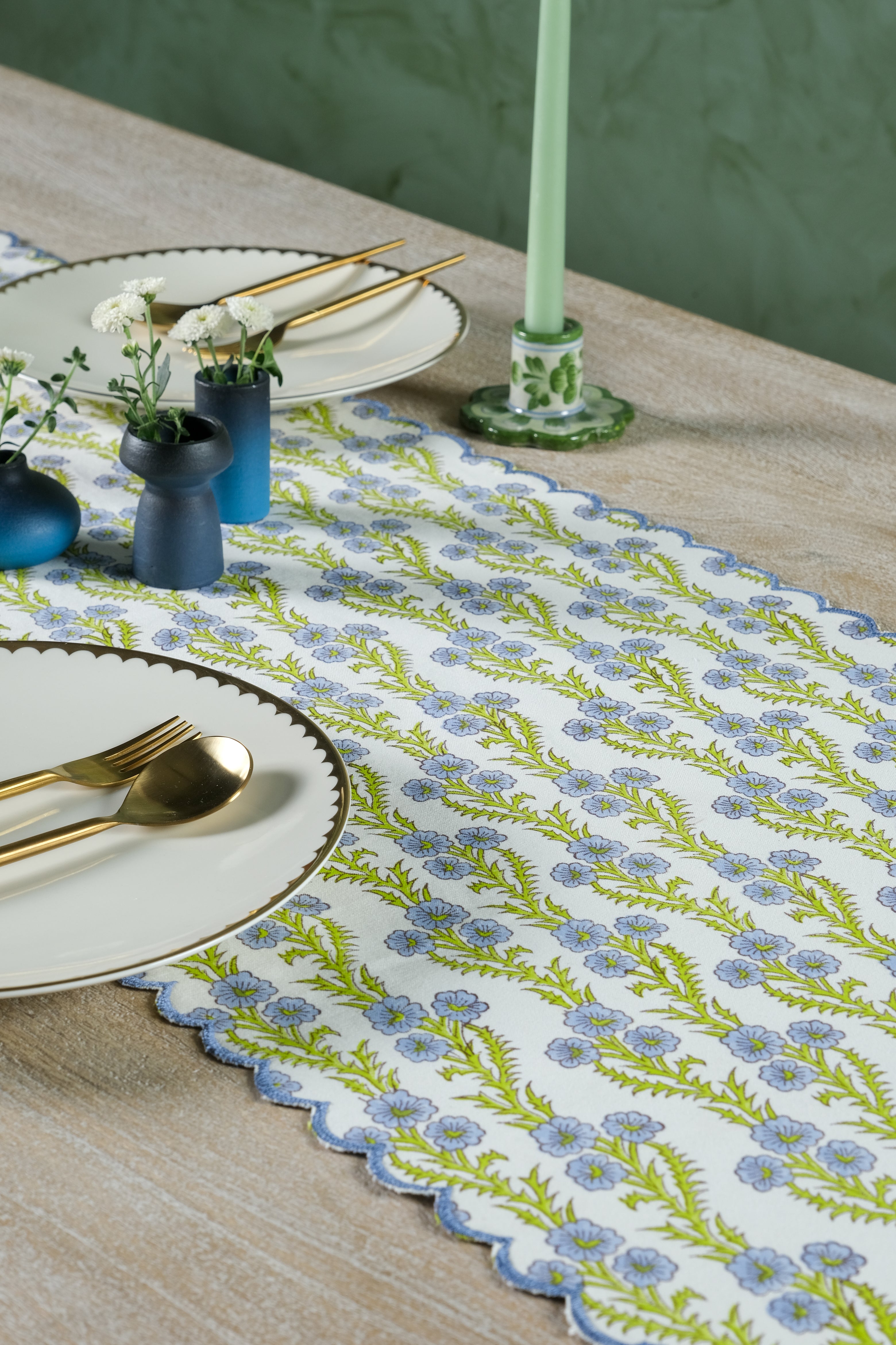 Forget-Me-Not Scallop Embroidered Blockprint Tablerunner