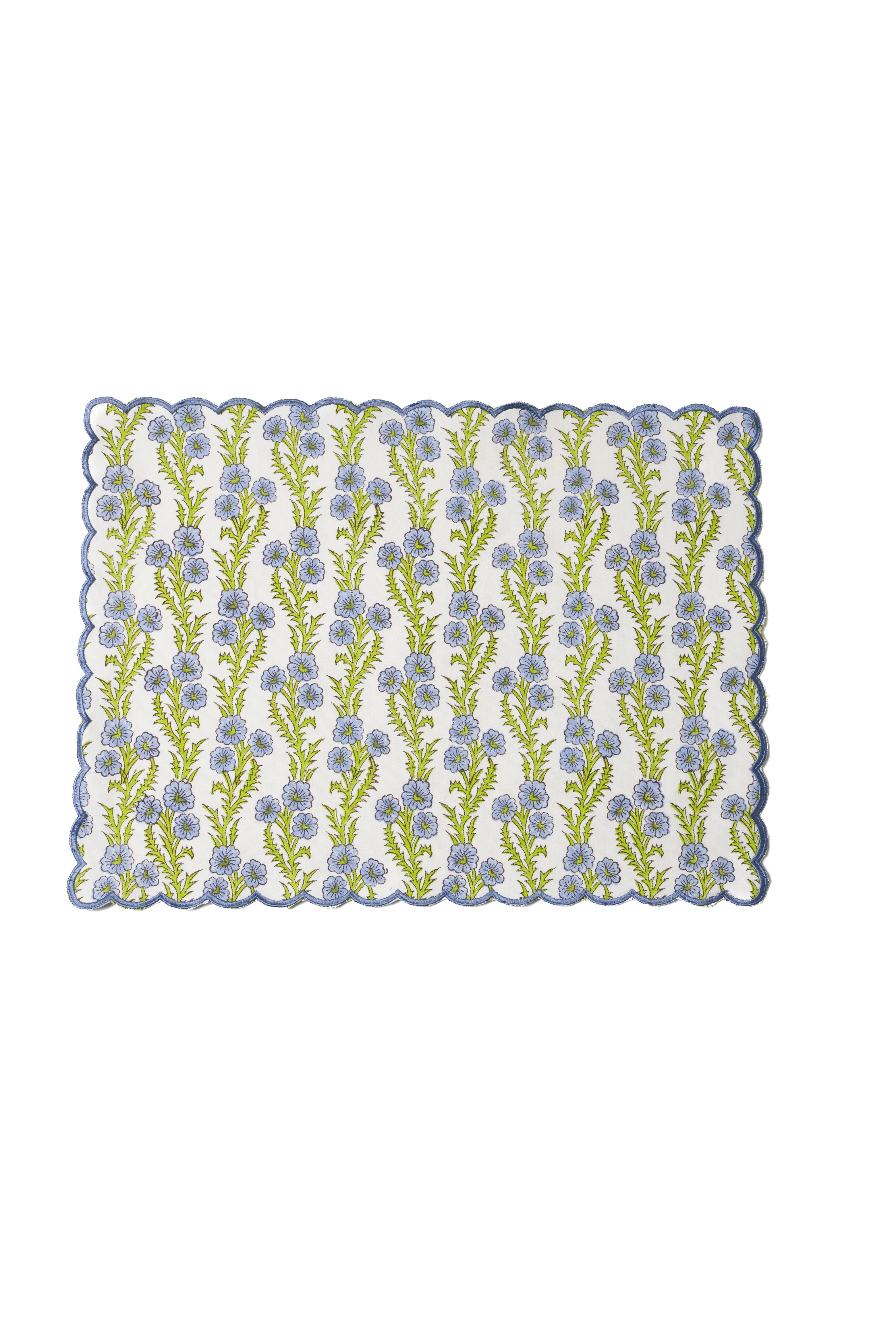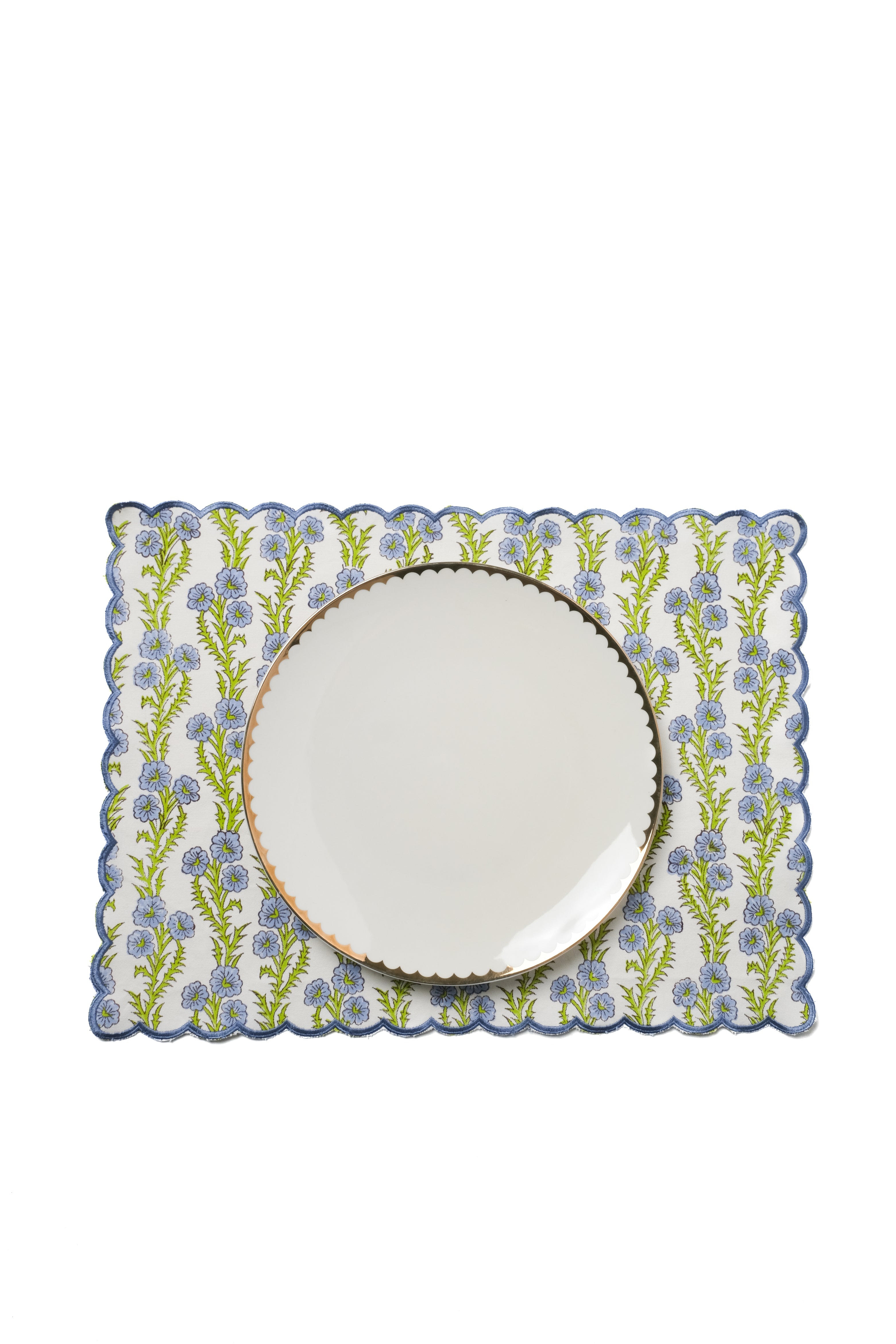 Forget-Me-Not Scallop Embroidered Blockprint Placemat