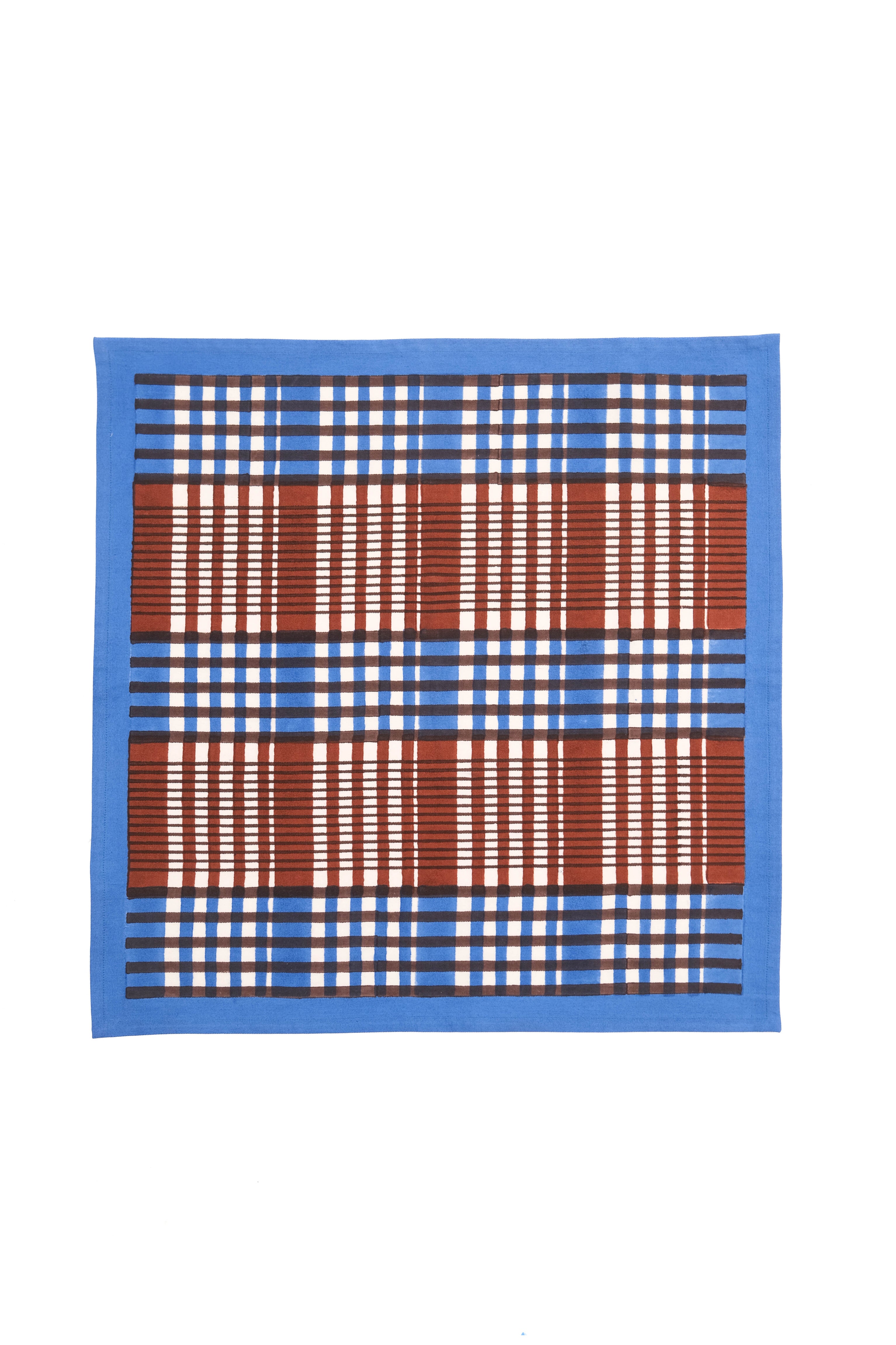 Shetland Plaid Blockprint Napkins in Brown and Blue, Set of 4