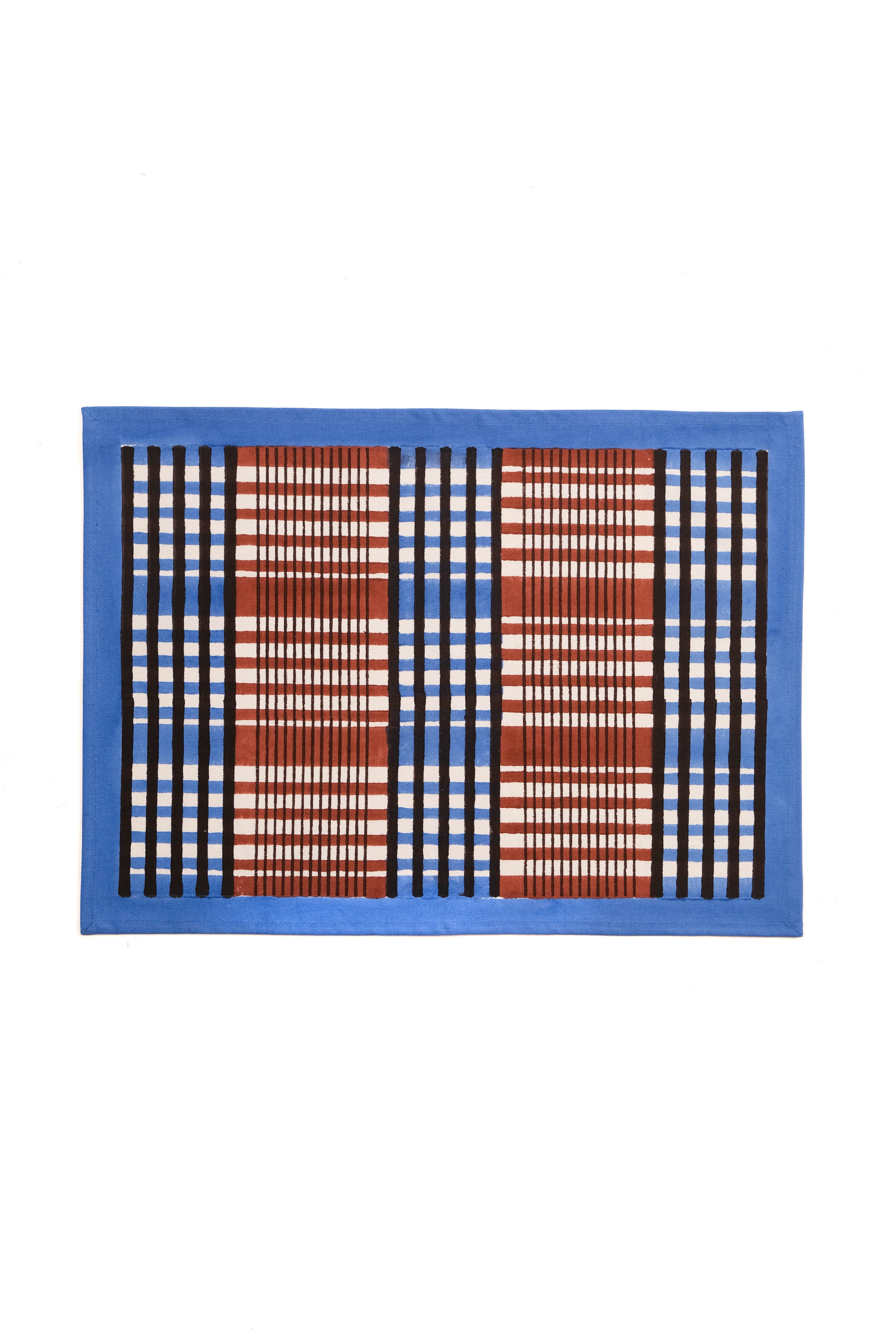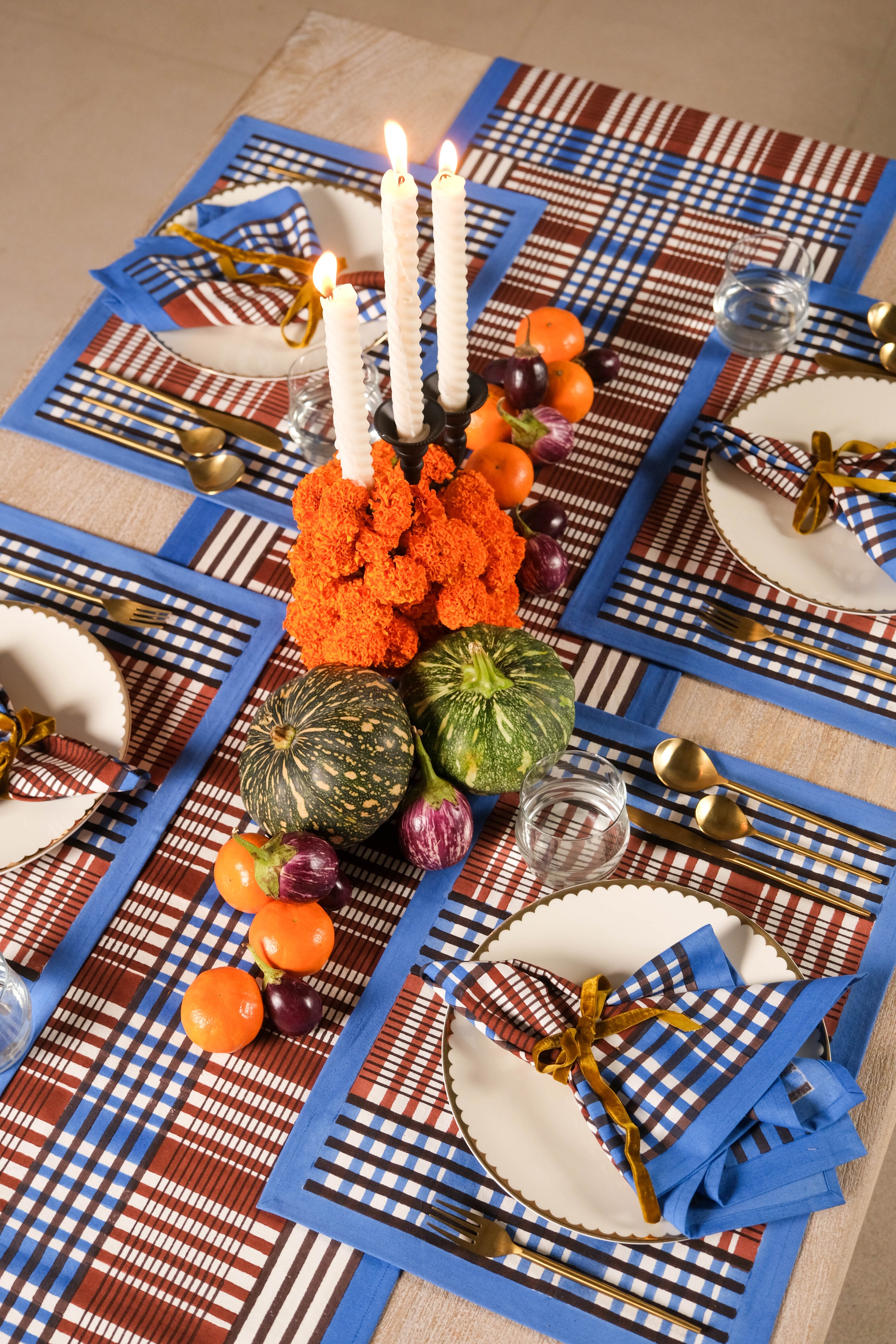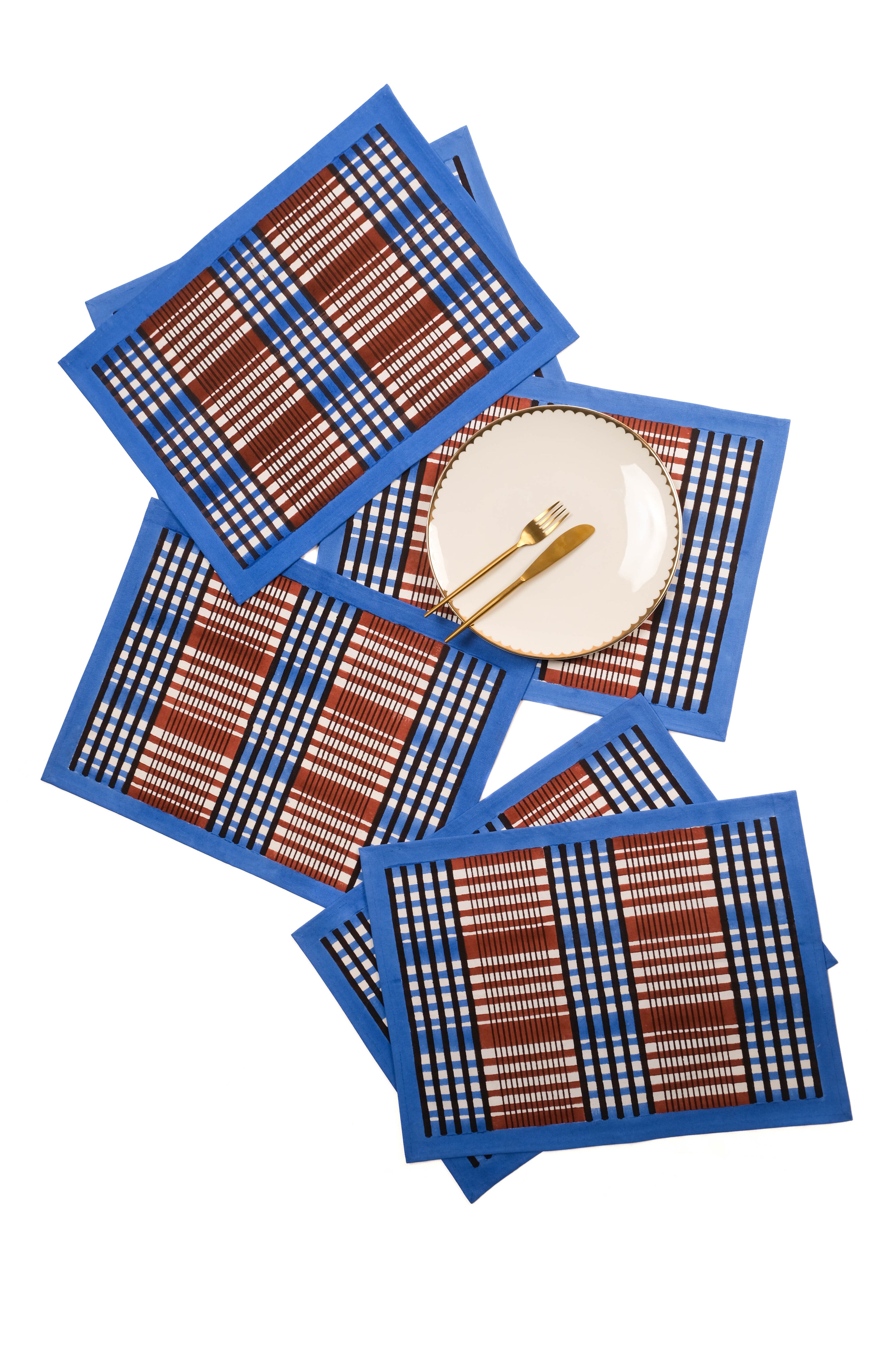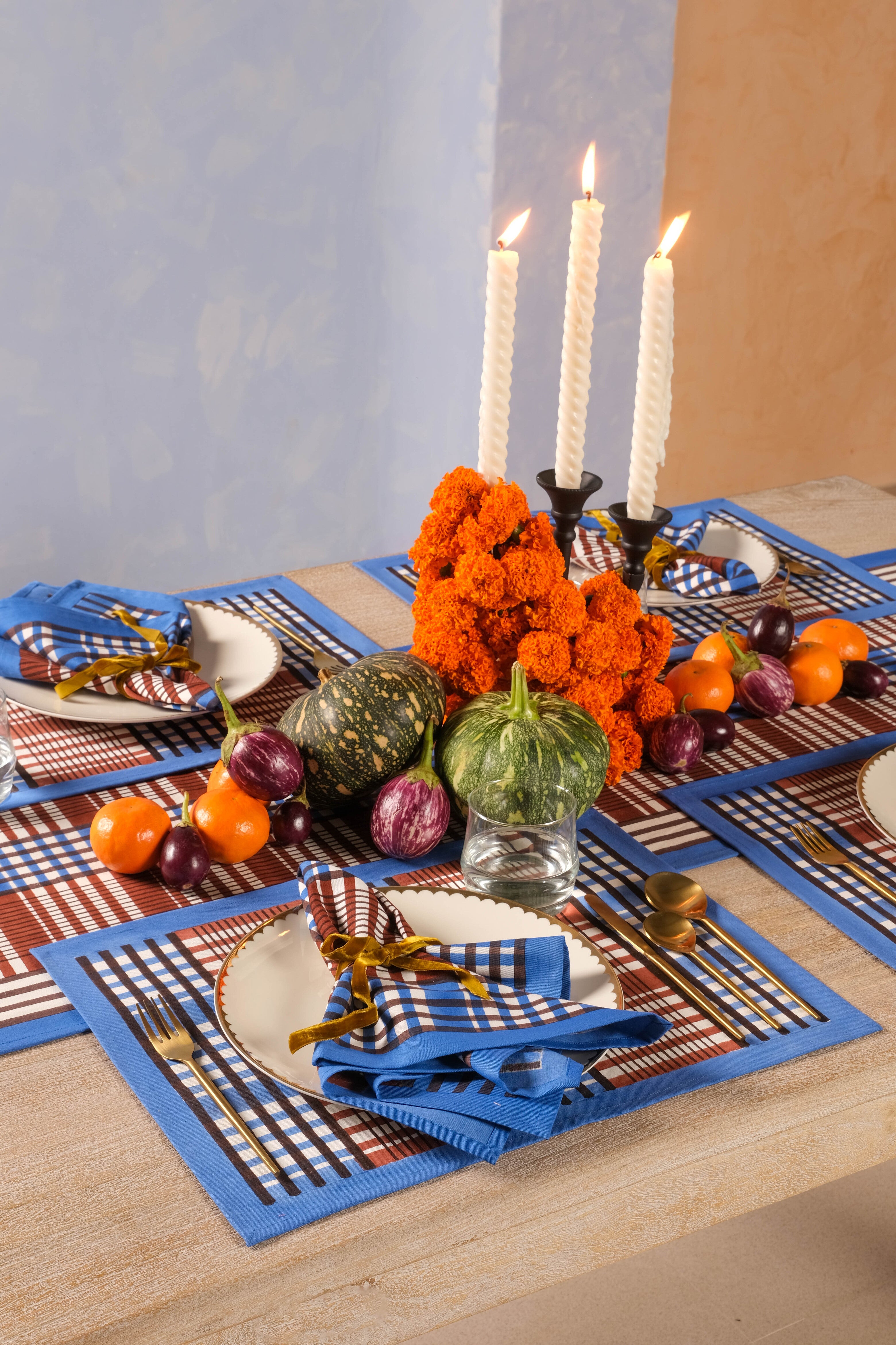 Shetland Plaid Blockprint Placemat in Brown and Blue