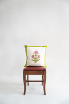 Green Poppy Blockprint Pillow