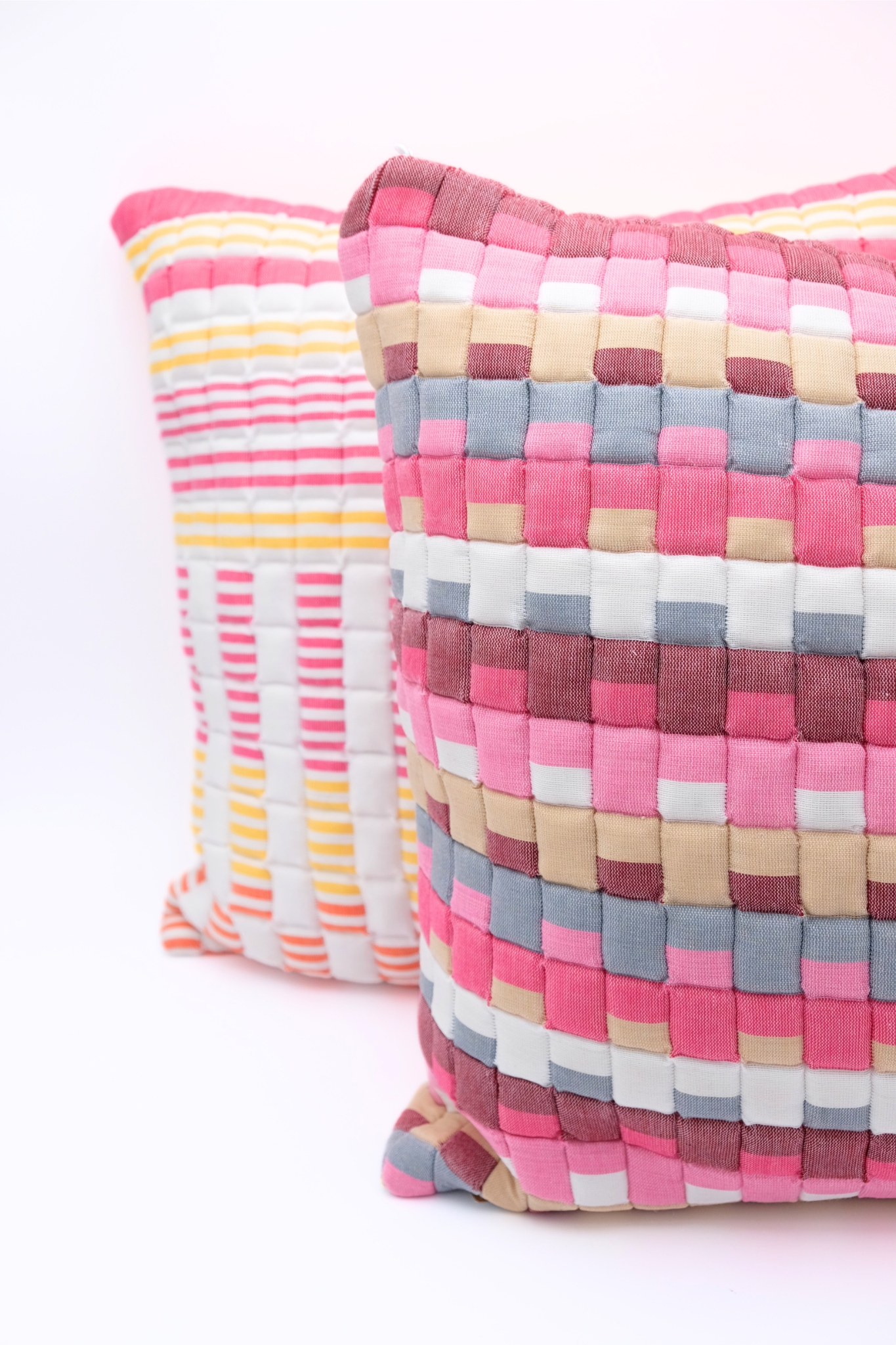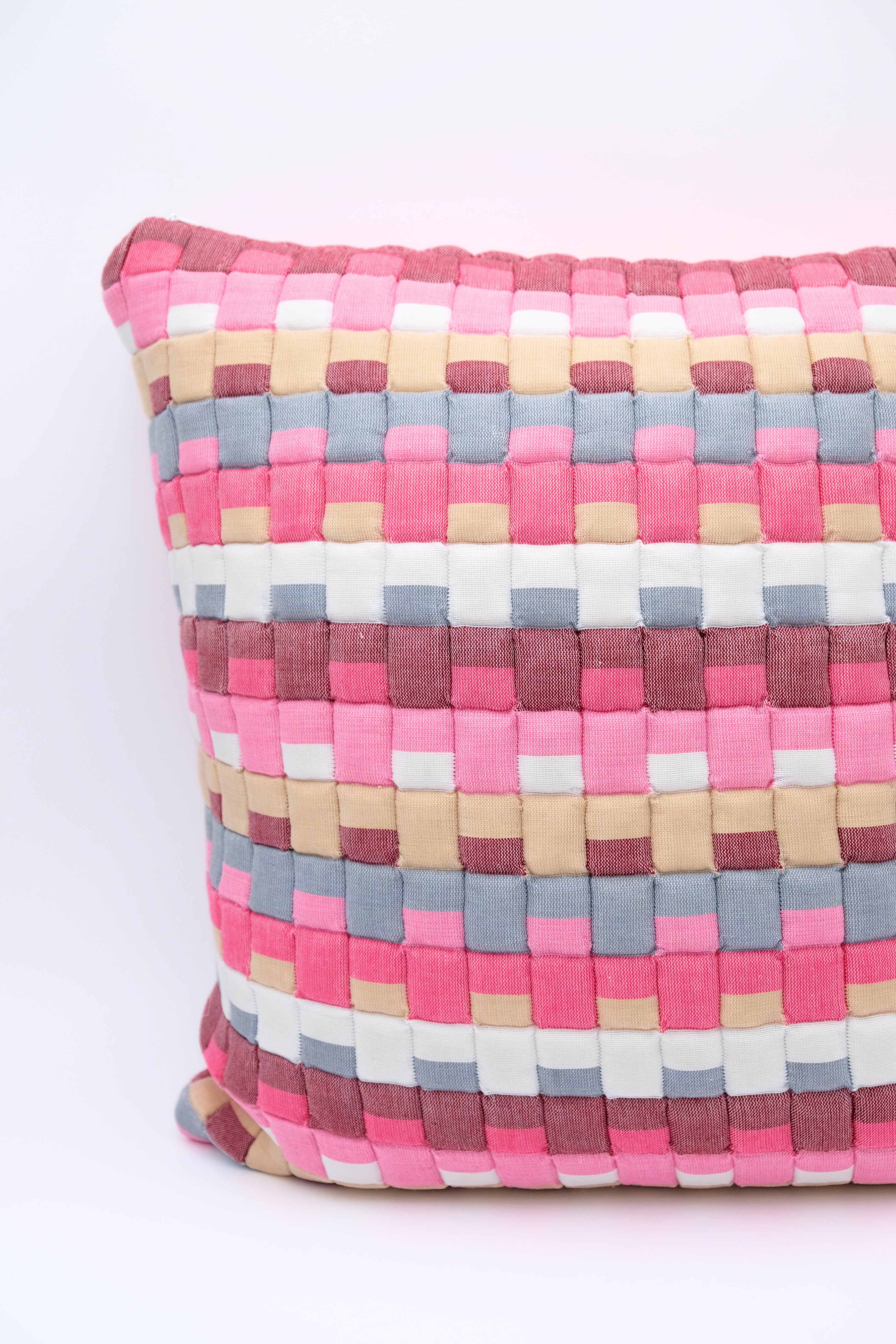 These pink tetris stripes create a vibrant and bold palette, perfect for layering on a sofa or adding character to a bedroom. Hand-loomed from high-quality cotton, it's as comfortable as it is stylish.