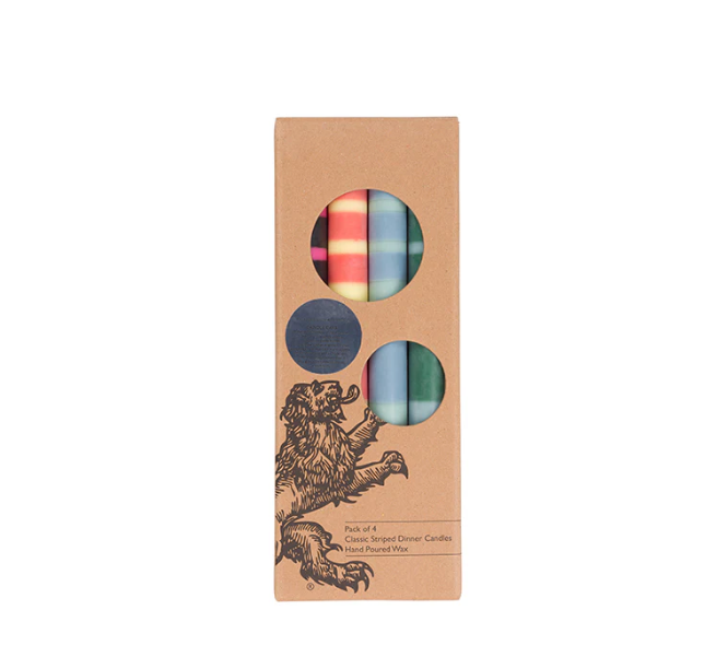 British Color Standard - Striped Red & Blues Eco Dinner Candles (4 pack)
