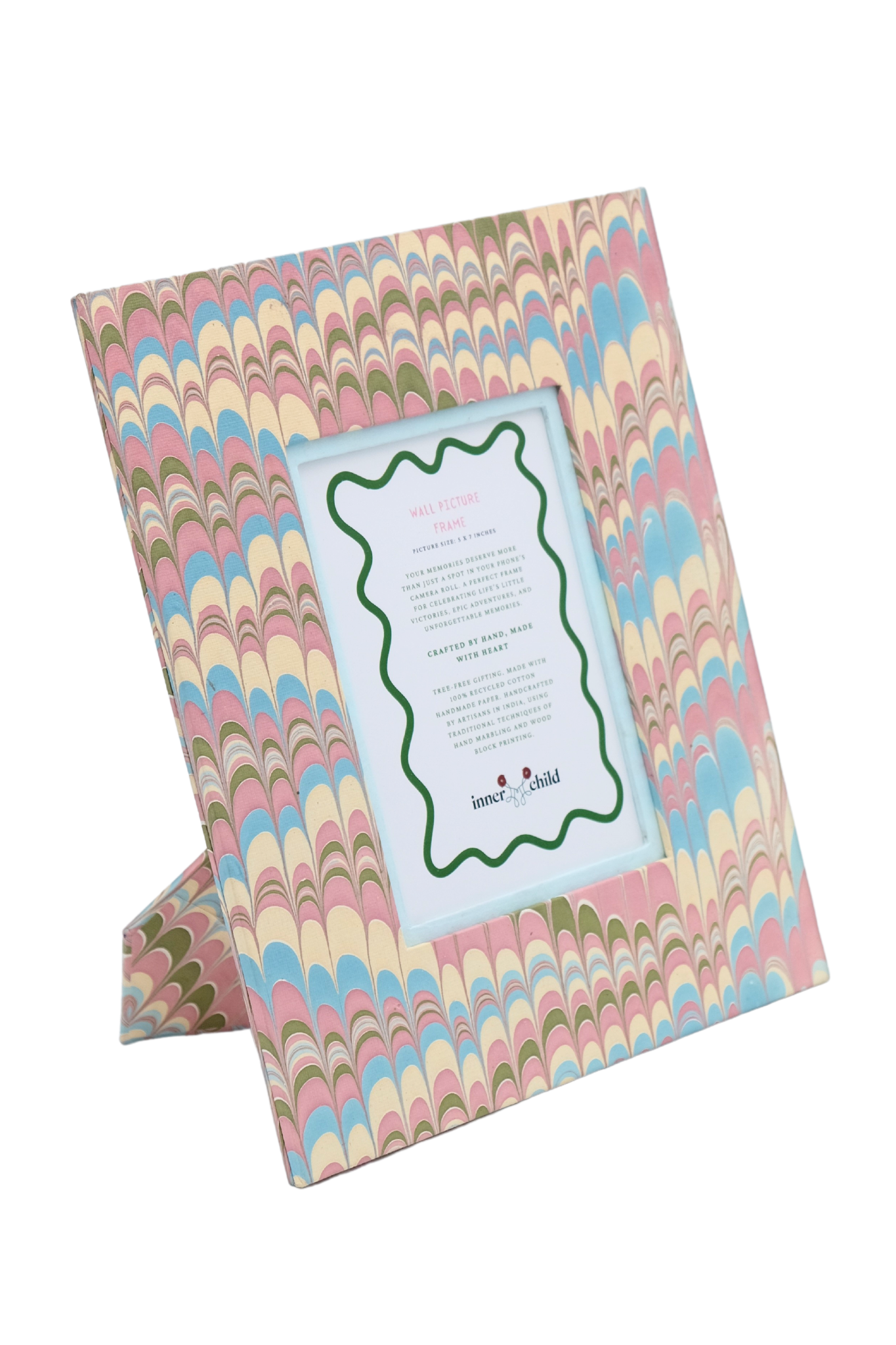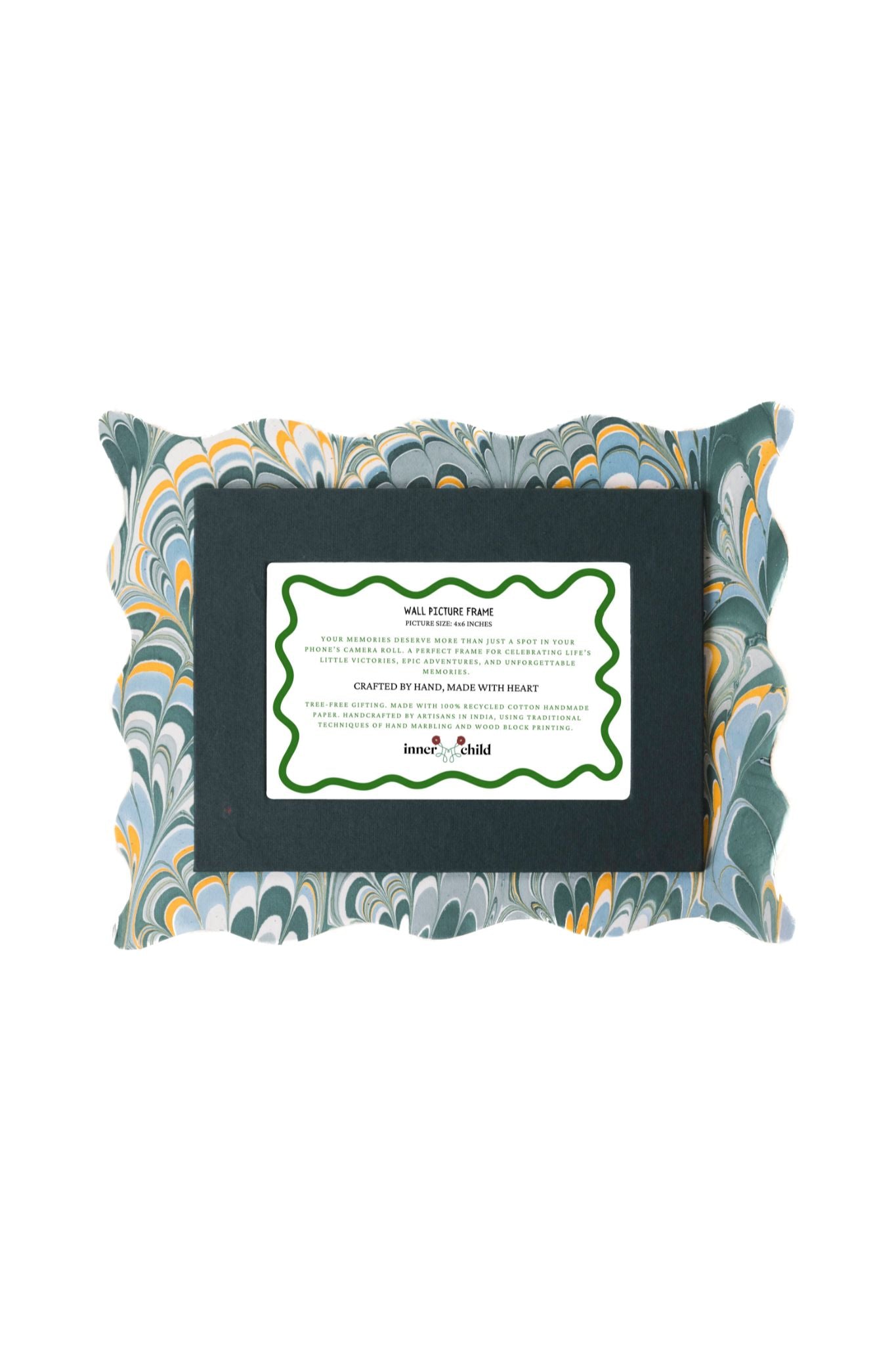Blue Scalloped Hand-Marbled Picture Frame 4x6 Picture