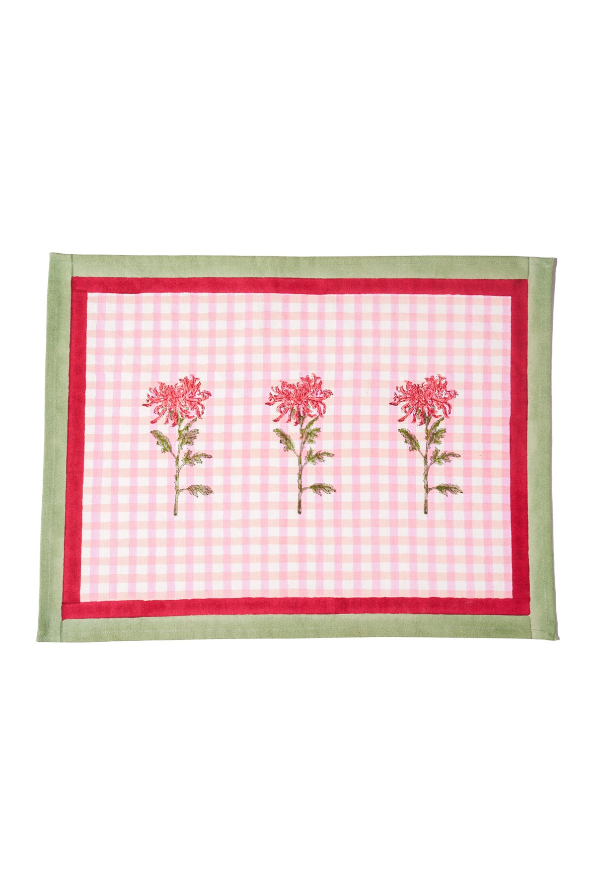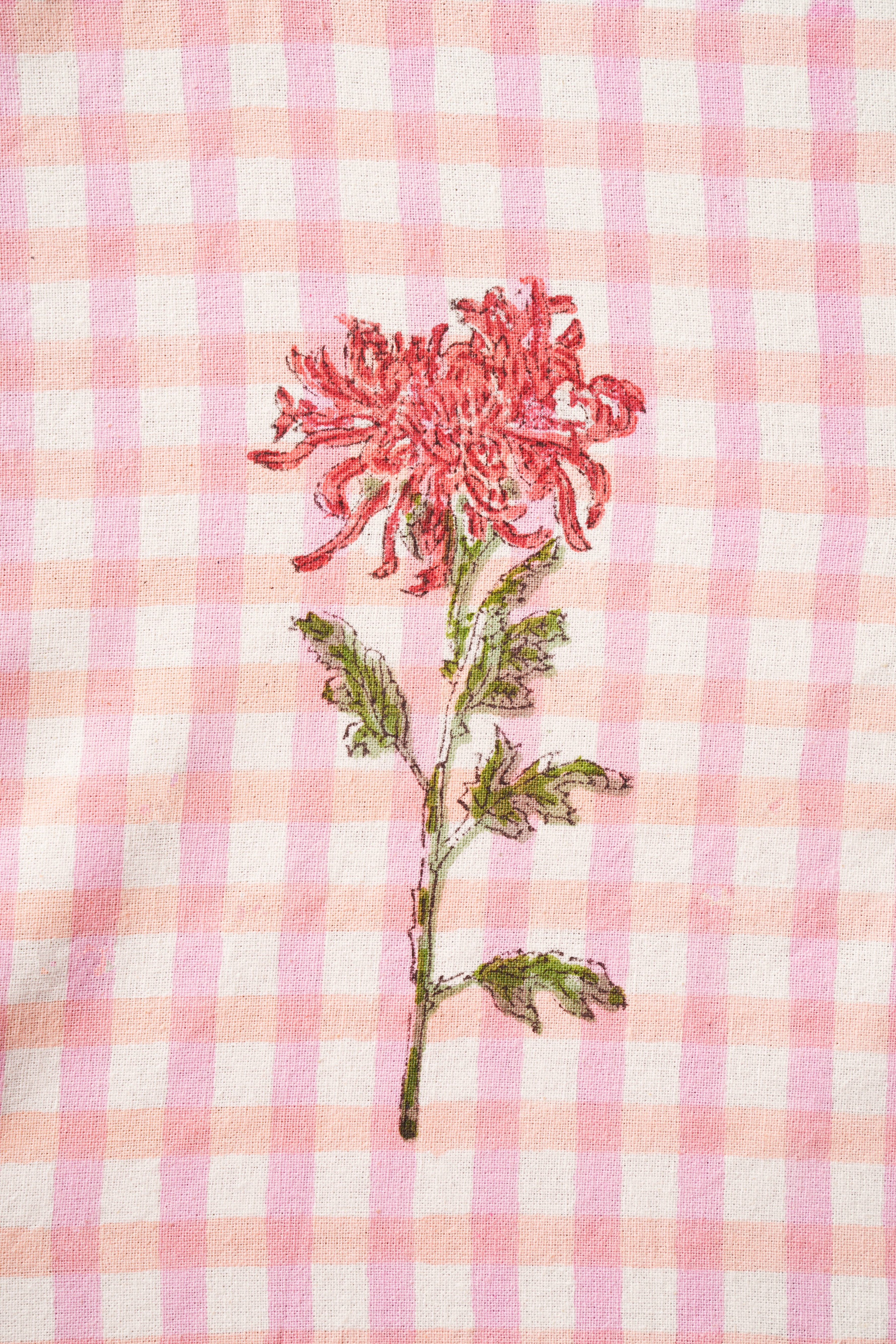 Cherry Makeup Bag in Blue Gingham Blockprint