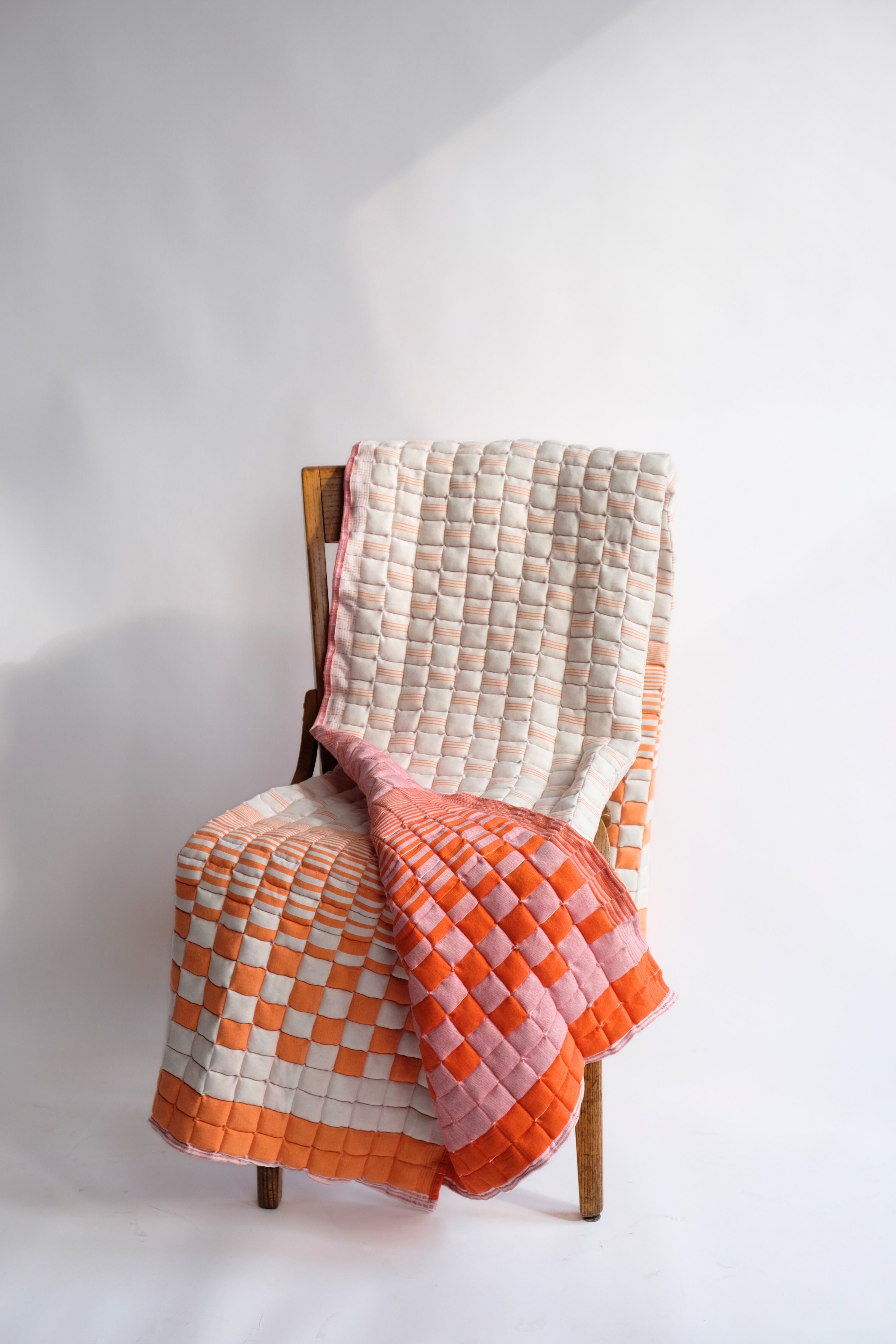 Ruffled Tissue Box Cover in Blue Gingham Blockprint