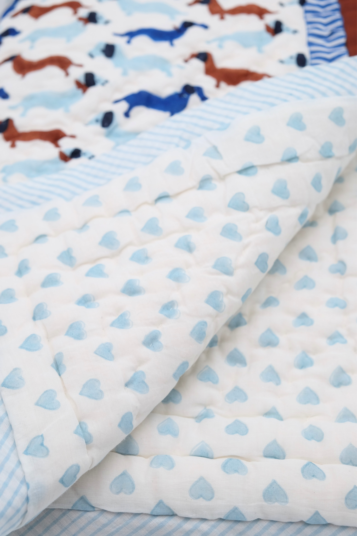 Dachshunds & Hearts Reversible Block Print Baby Quilt
