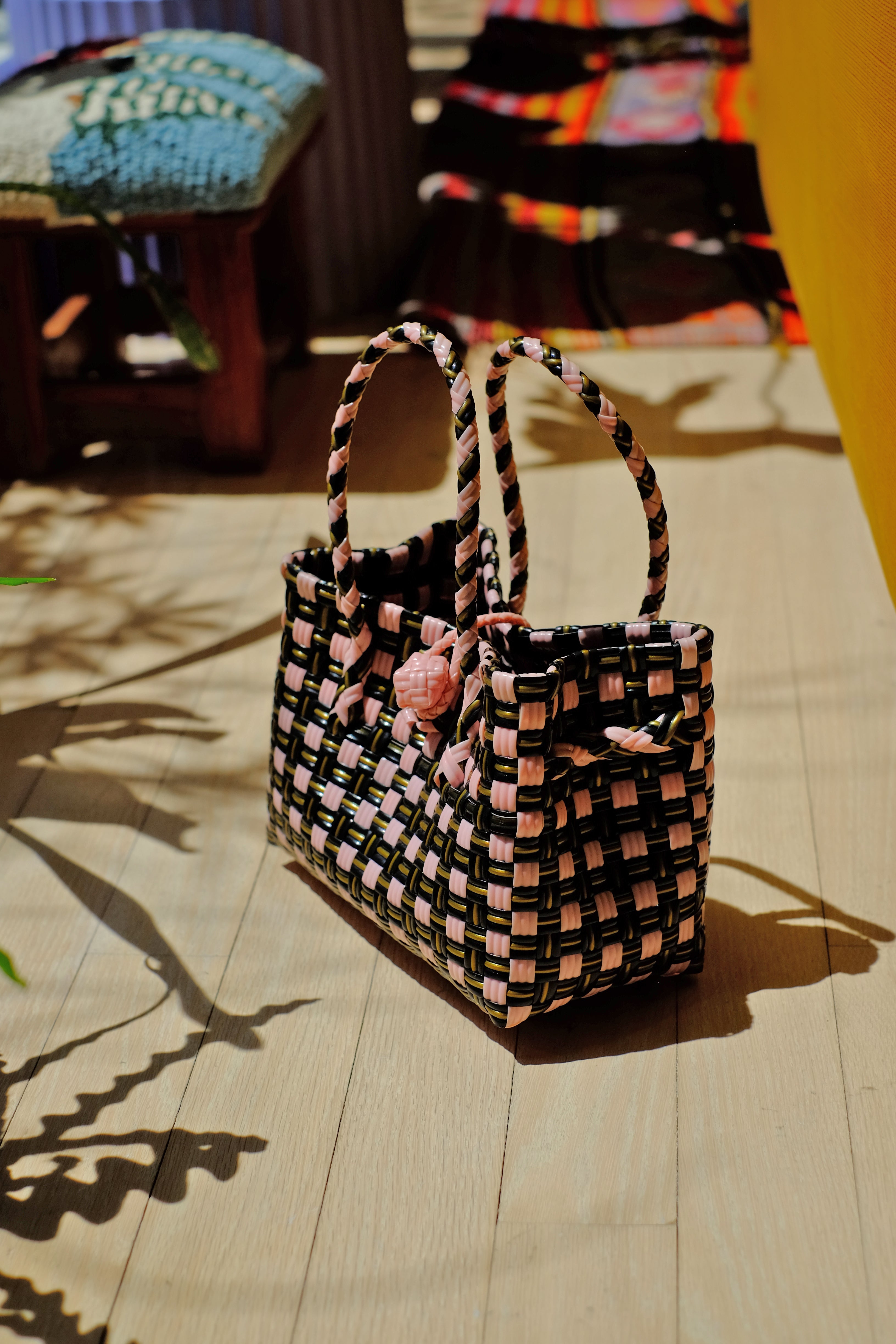 Saigon Birkin Recycled Plastic Bag in Black and Pink