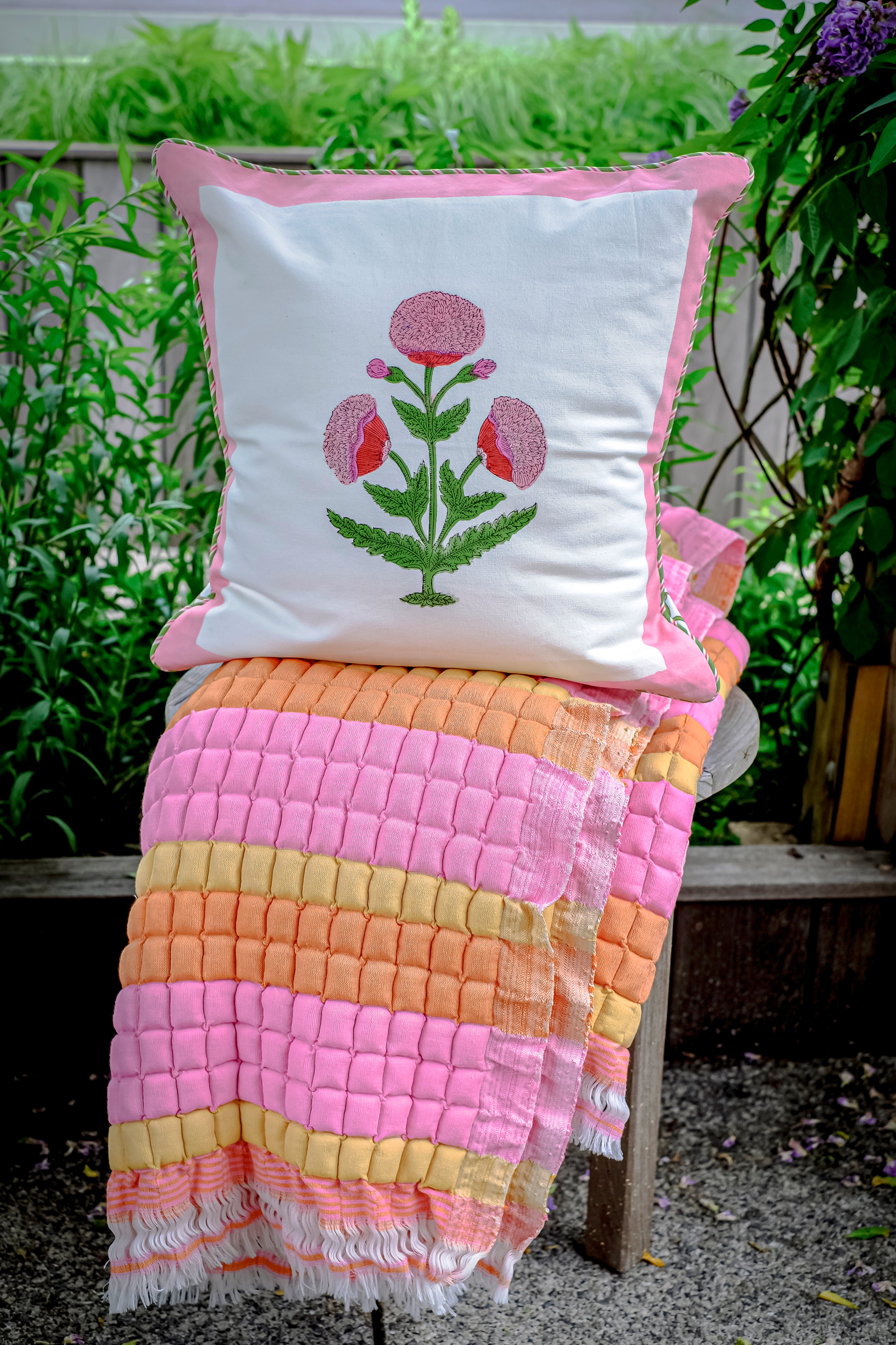 Forget-Me-Not Scallop Embroidered Blockprint Placemat