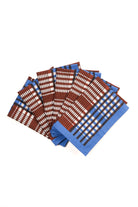 Shetland Plaid Blockprint Napkins in Brown and Blue, Set of 4