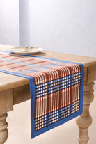 Shetland Plaid Blockprint Tablerunner in Brown and Blue