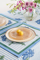 Hydrangea palooza! This tablecloth features a stunning blockprint of bold, blue hydrangeas, bringing a touch of nature's beauty into your home.