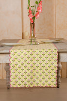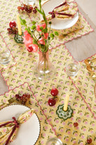 Mona Scallop Embroidered Blockprint Tablerunner in Butter Yellow