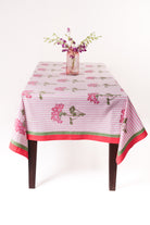 Hydrangea palooza! This tablecloth features a stunning blockprint of bold, pink hydrangeas, bringing a touch of nature's beauty into your home.