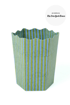 Blockprint Scallop Waste Bin / Storage Bin in Green and Blue Stripes