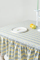 Provence Ruffled Blockprint Tablecloth in Butter Yellow