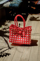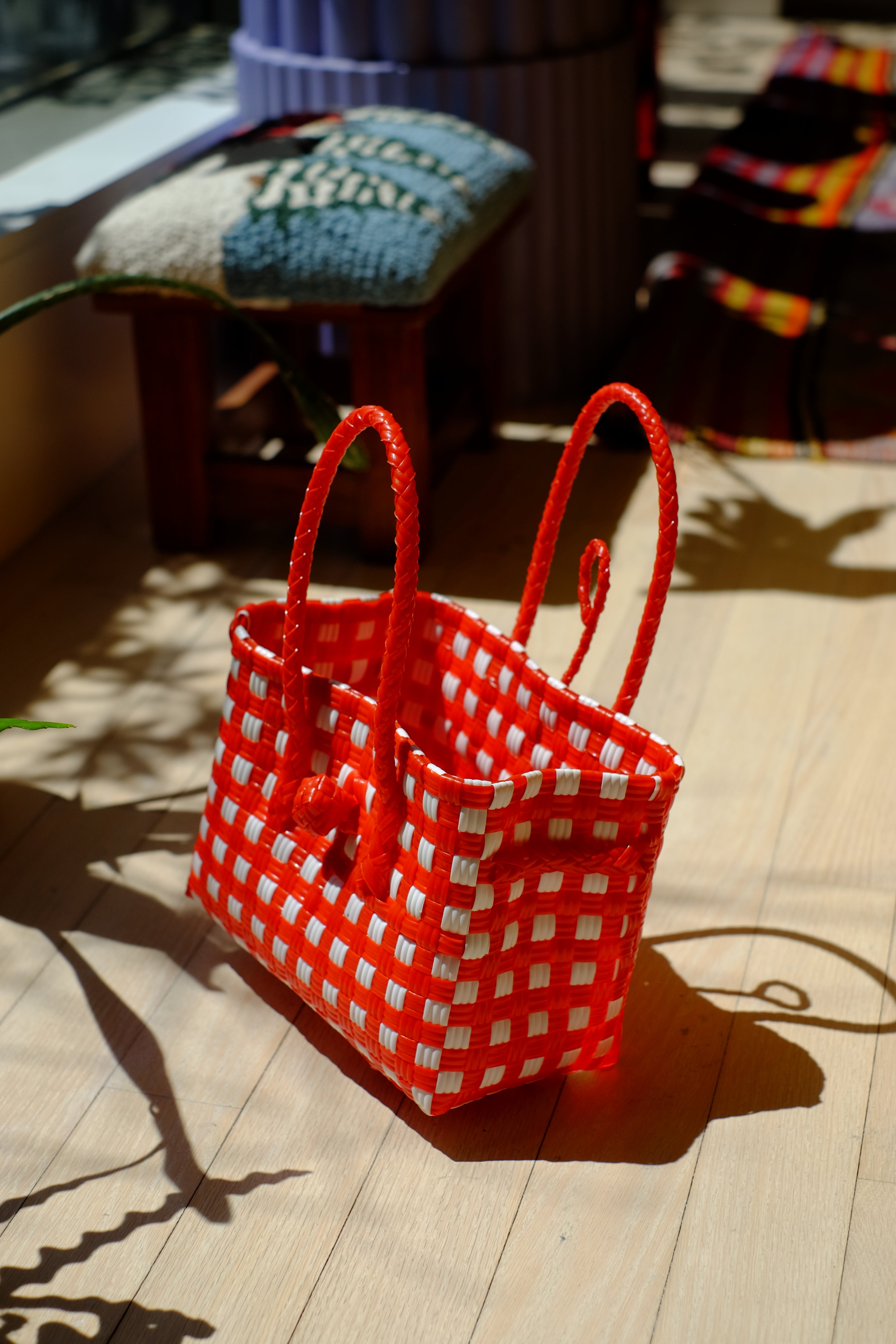 "Saigon Birkin" Recycled Plastic Bag in Red and White